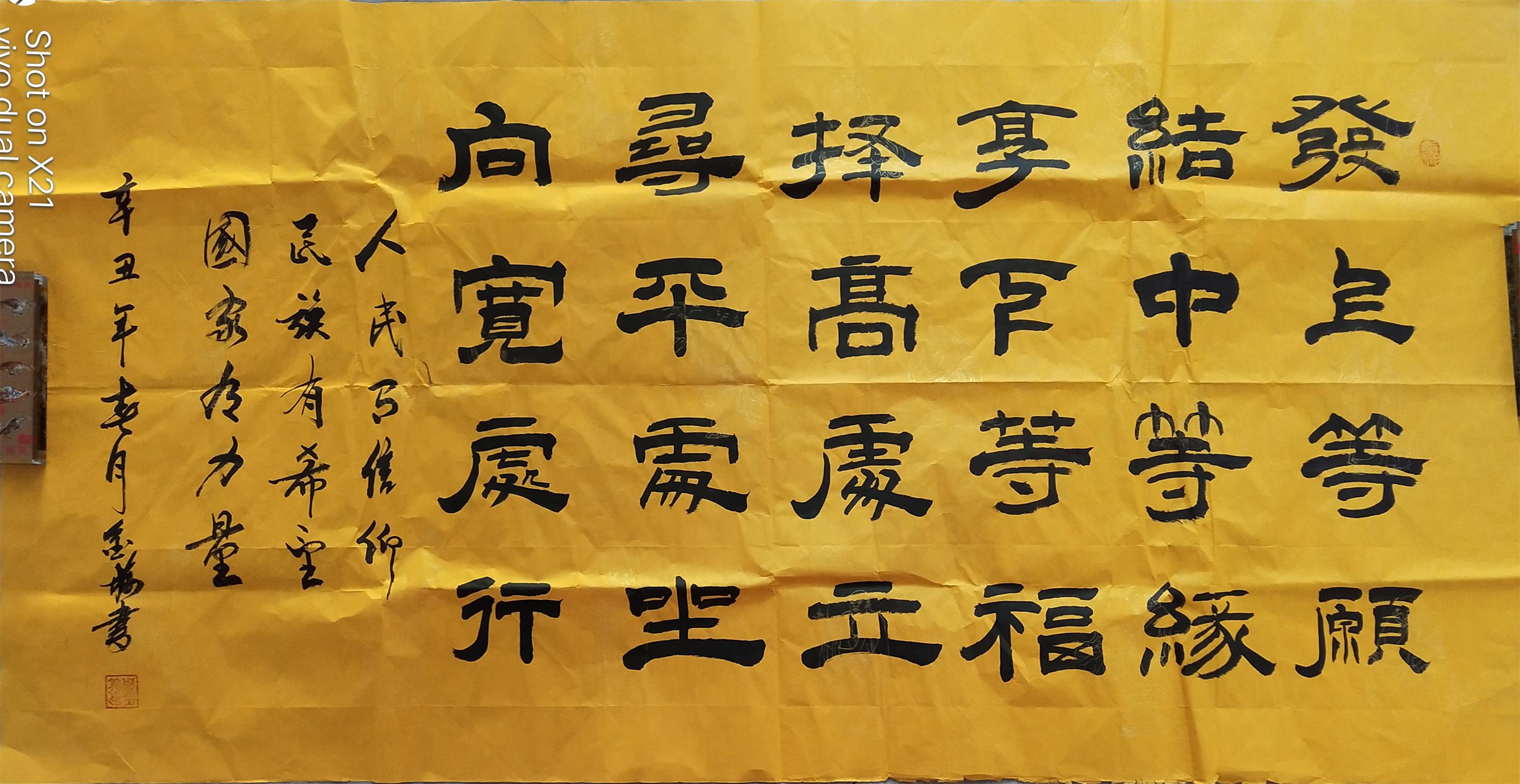 法,博采众长,耳濡目然,得益极大。师承刘炳森,精于隶书。日积月累, 作品