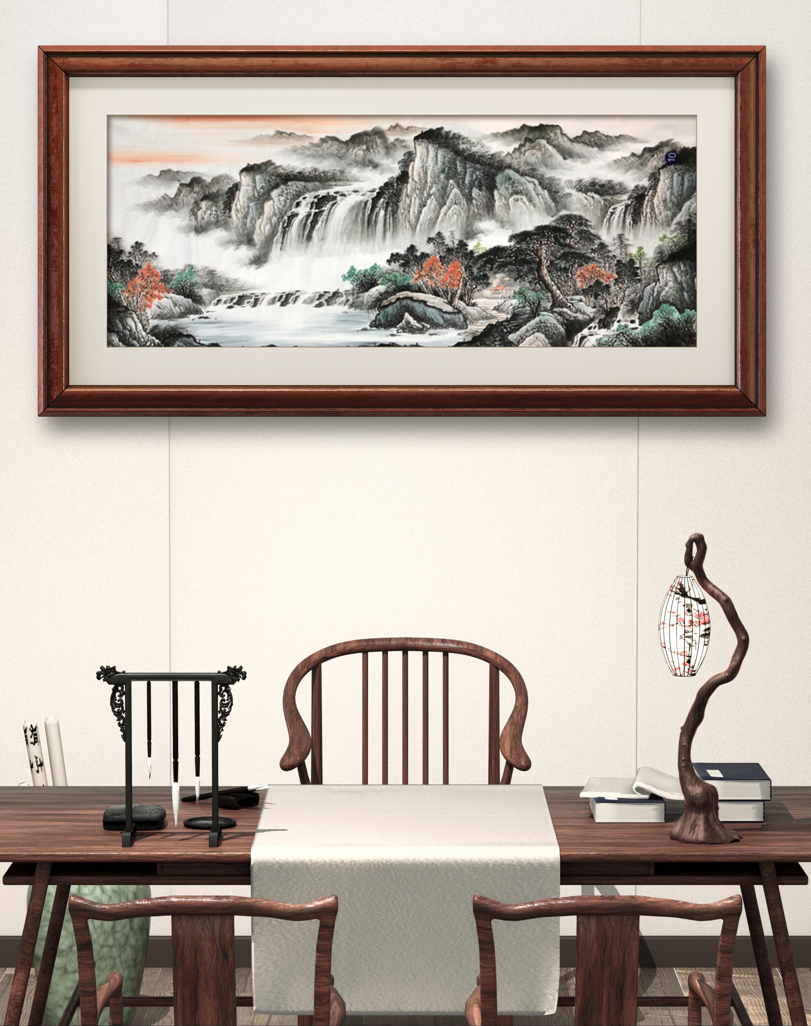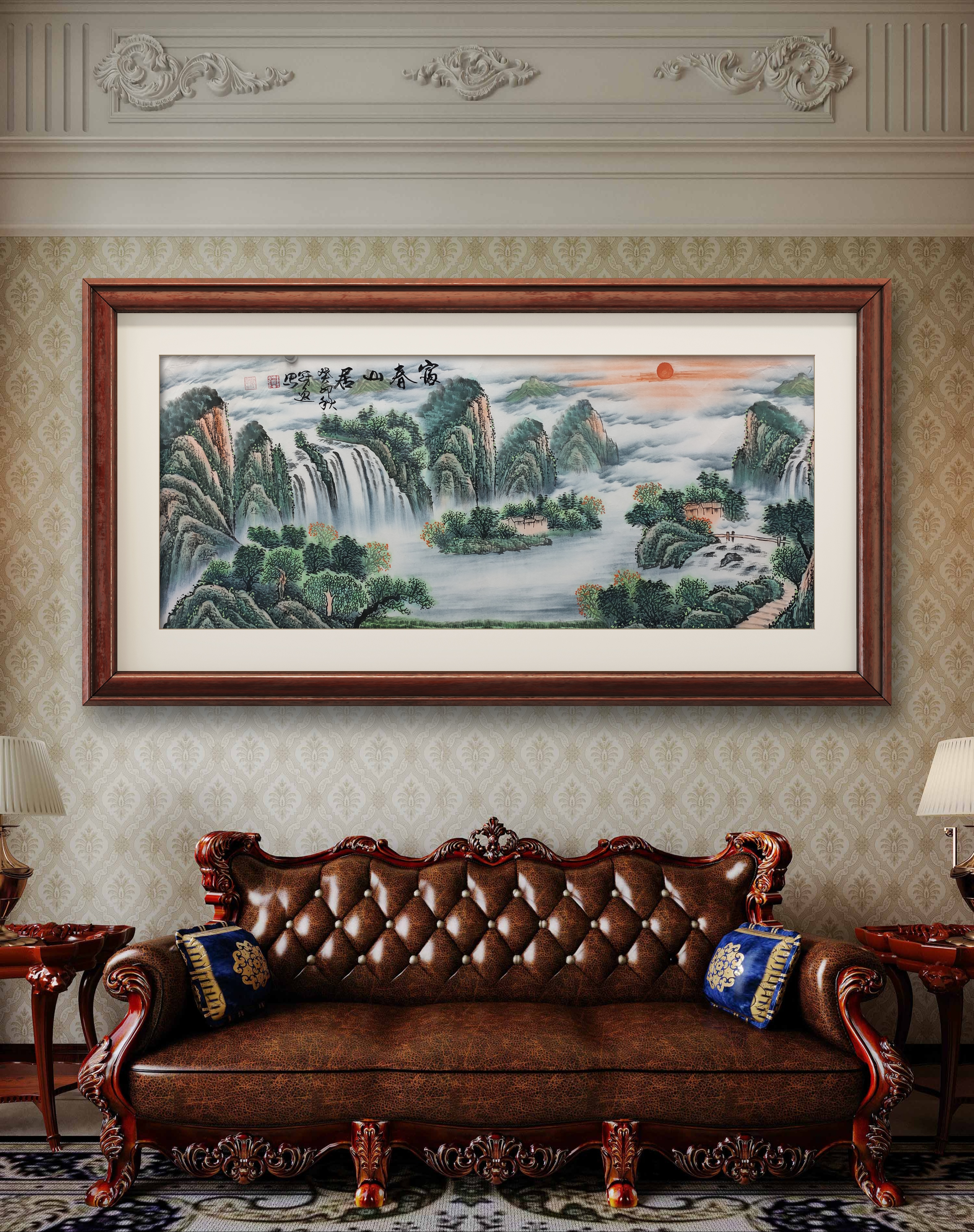 先生的国画作品,尽承诸恩师之长,法天地自然,采日月灵气,汇万千造化;气势恢宏,接天迎日,大气磅薄,险峻雄奇,包寰宇于心,藏气象于怀,奔放自如,宽简不扰,构图合理;刻画细腻,意境悠远,观之,如身临其境、心旷神怡,让人有无限愉悦之感!彰显了先生高超的艺术造诣!实乃当今不可多得的书、画兼修之艺术大家!其独具魅力的书画作品,多次获得国家及国际书画大赛奖项!多次被组委会、书画院、博物馆、艺术院校、单位及个人所收藏,曾多次作为国礼赠予外国政要、博物馆、收藏家等。