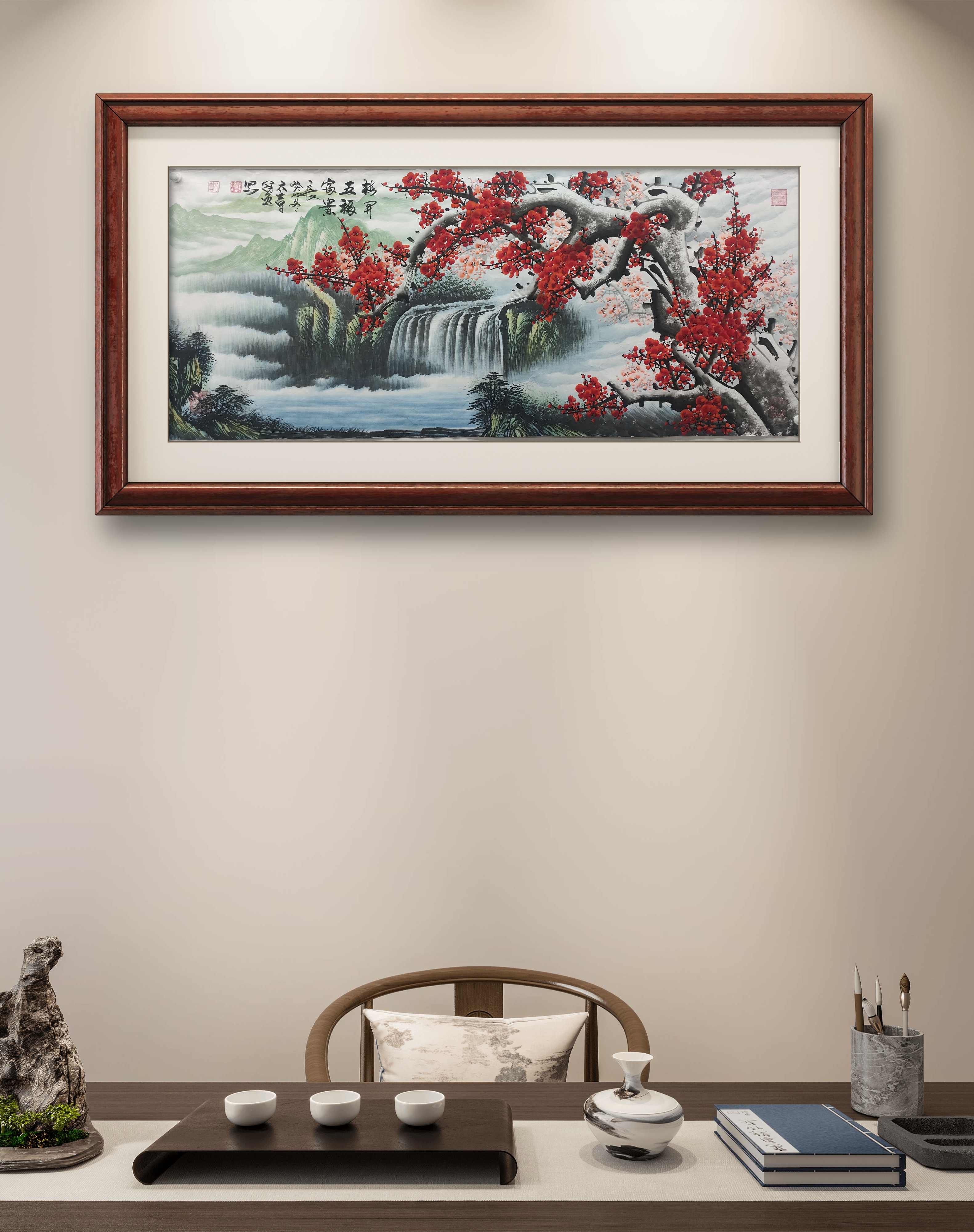 2016年,纪念G20峰会在杭州召开,全国书画邀请赛中,国画《梅开五福富贵长》(组画五幅)荣获大赛金奖。作品藏于G20峰会博物馆。