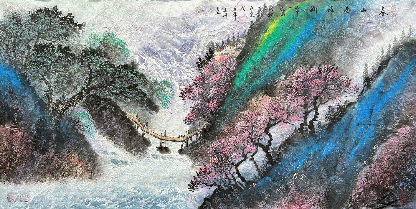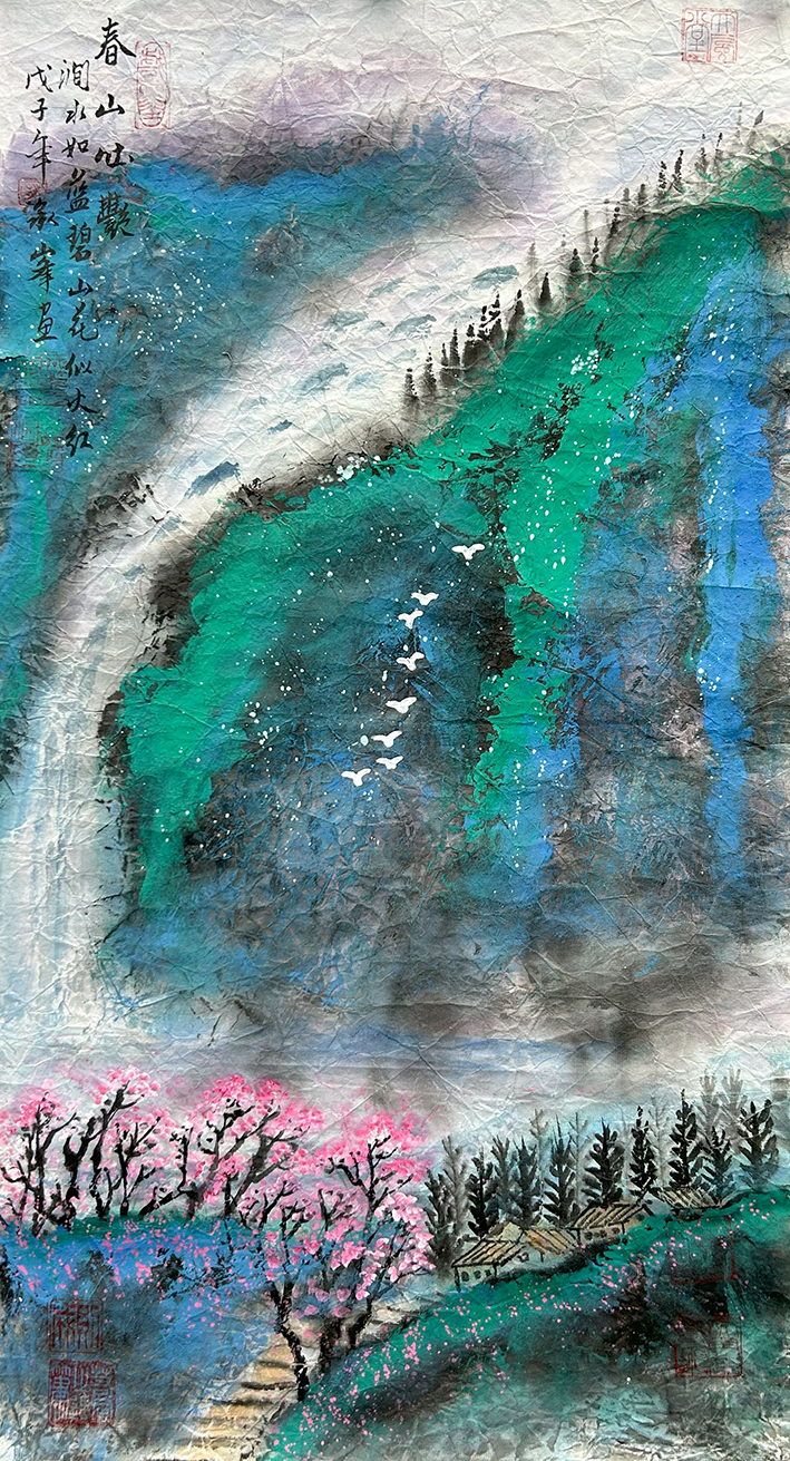 苑承峰的山水画有大千之致,似石涛风神,笔墨丰富,题材多变,或大气恢弘,或清新秀润,或深远,或瑰奇,万象多姿,如梦似幻,他的艺术作品充满了生命力和感染力,也体现了他对生活的追求。