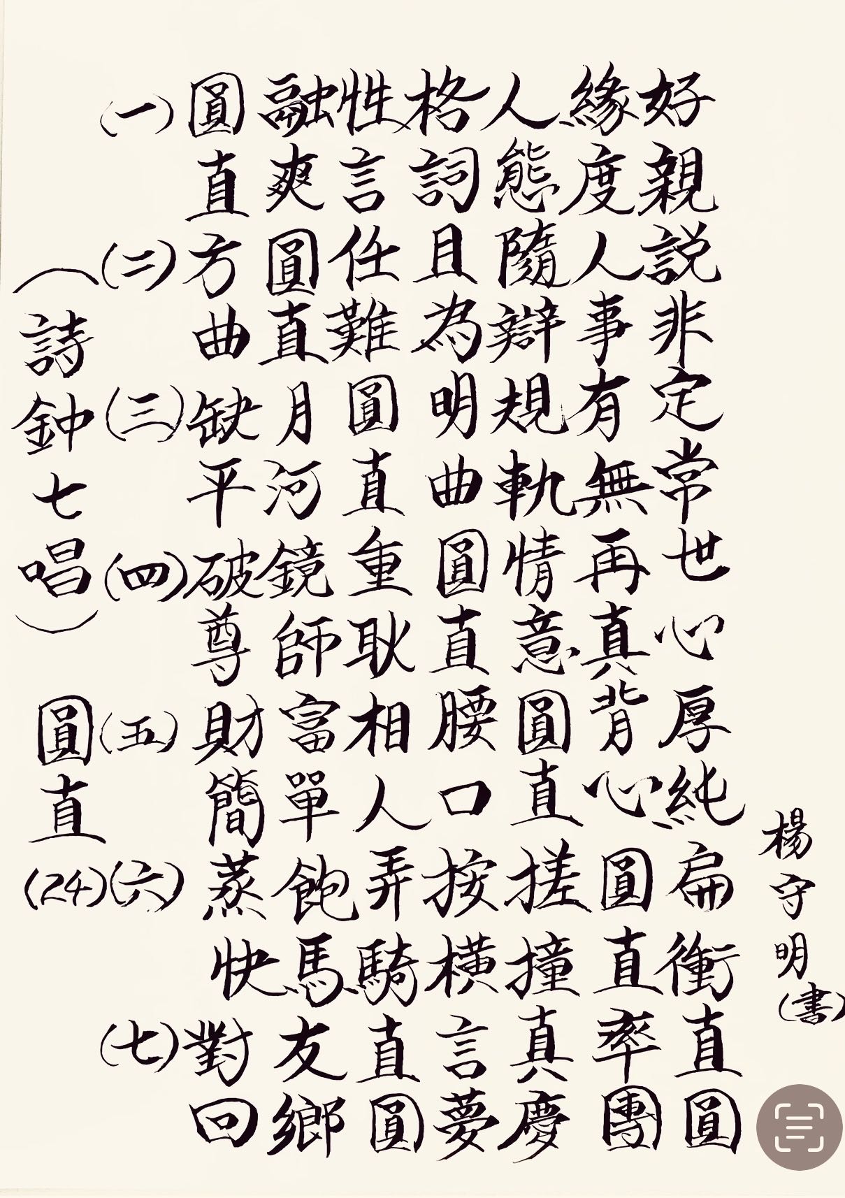 杨守明先生的书法,堪称一绝。他的书法特点鲜明,既有瘦金体的风骨,又展现出遂心应手的文人洒脱印象。在技法上,他深得古人之精髓,笔触刚劲有力,线条流畅自然,每一个字都显得骨肉丰满,充满生命力。同时,他巧妙地运用笔锋的变化,使得每一个笔画都富有层次感,呈现鸾凤飞仪的姿态体感,使得字体在形态上,既有规矩又有变化。整体来看字形结构严谨,笔画的组合恰到好处,给人和谐之美。同时,他又善于运用不同的笔划和字形,使得每一个字都有独特的韵味和个性,不仅在整体上给人一种优美的视觉享受,而且每一个细节都经得起推敲。