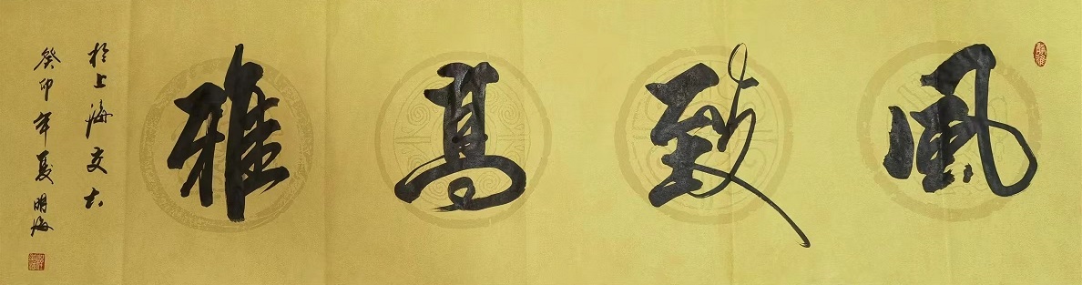 由此来看。我更认为程明海先生的这些书法作品是一种文人化的修养产物,而不是属于简单的笔墨技法形式。当然,能够达到这种书法境界,也是和他的生活经历和文化历程离不开关系,长期以来,程明海先生一直都是有从事于教育性工作,并相继兼任欧洲商学院院长、海哲教育董事长等社会名职,所以这种立杏坛育人的严谨心态和授业修养,自然也都是能够潜移默化地影响着他的书法作品。所谓凡善书画者,未有不品学兼长,便就是这个道理。