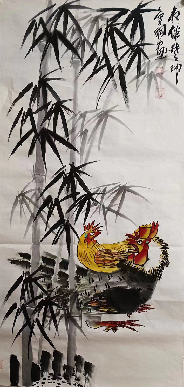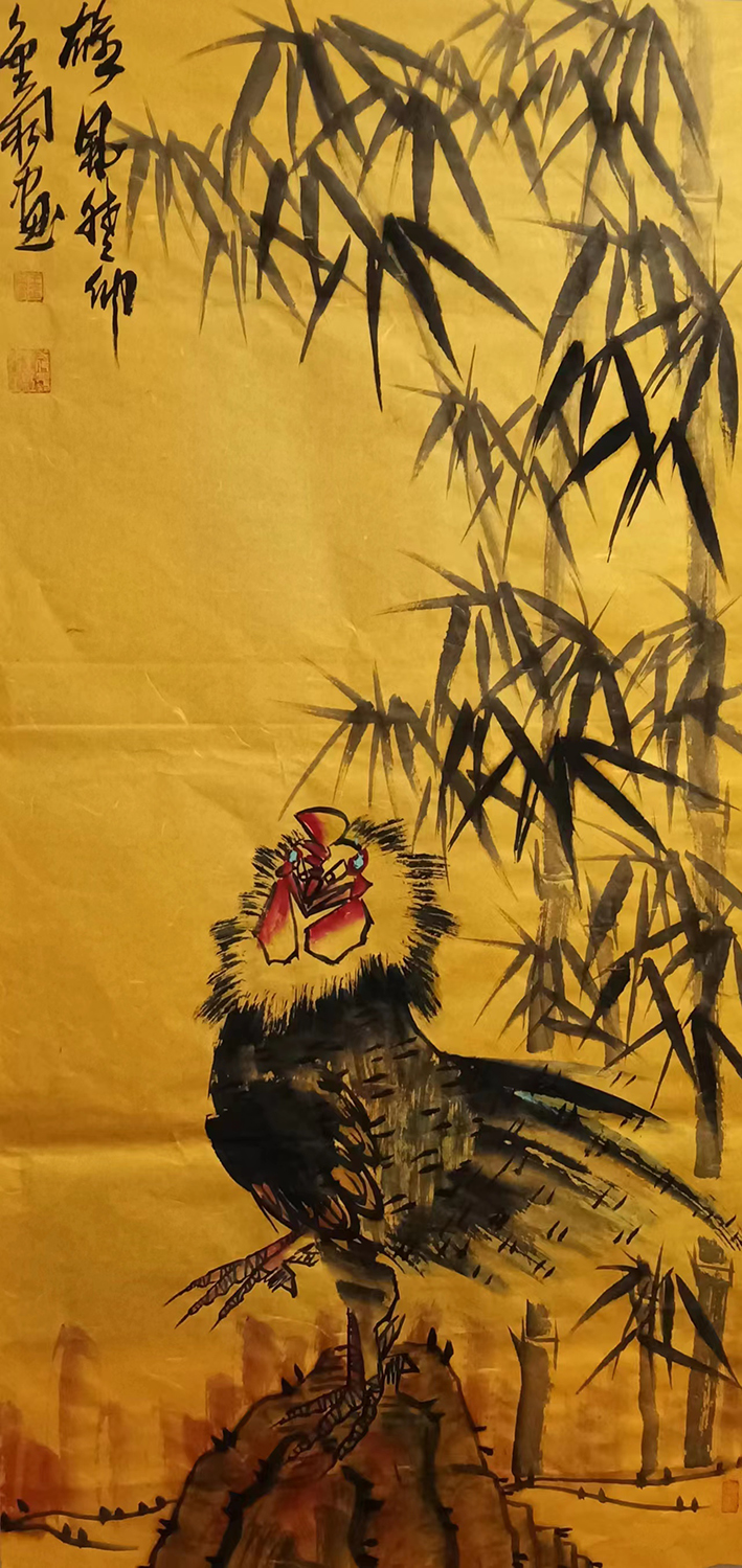 书之于画皆有据,无据者乃为庸书庸画者也。王金朋先生非常注重外师造化,他出去写生风雨无阻,不畏酷暑严寒,他把自己融入到自然当中,闻鸡起舞,与鸡为伴,观察到了雄鸡的千姿百态,,千姿百态的雄鸡在王金朋笔下呼之即出。