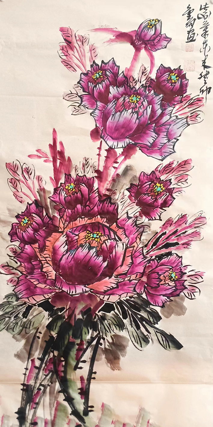 王金朋先生以画鸡闻名,人称红鸡王。王金朋先生自幼研究书画,研究书画他用了三个一千,即,一千刀纸,一千斤墨,一千支笔。