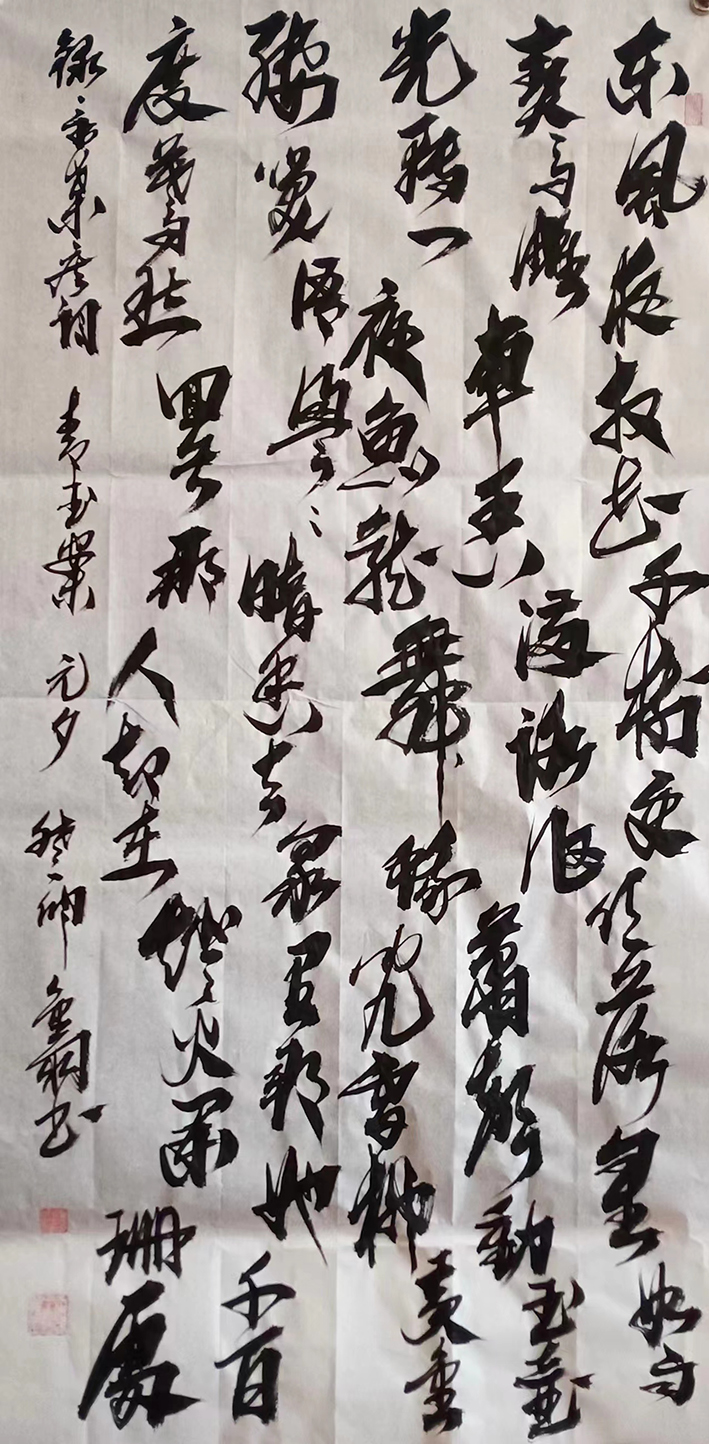 王金朋先生在研究书画的同时,还用一个艺术家独特的視角,同唯物辩证法结合,用独特的思维,感觉感知的理论,博古通今,用毕生精力写出了他的书画理论。草书概说,雄鸡的画法和牡丹的画法,均出自他的手笔。