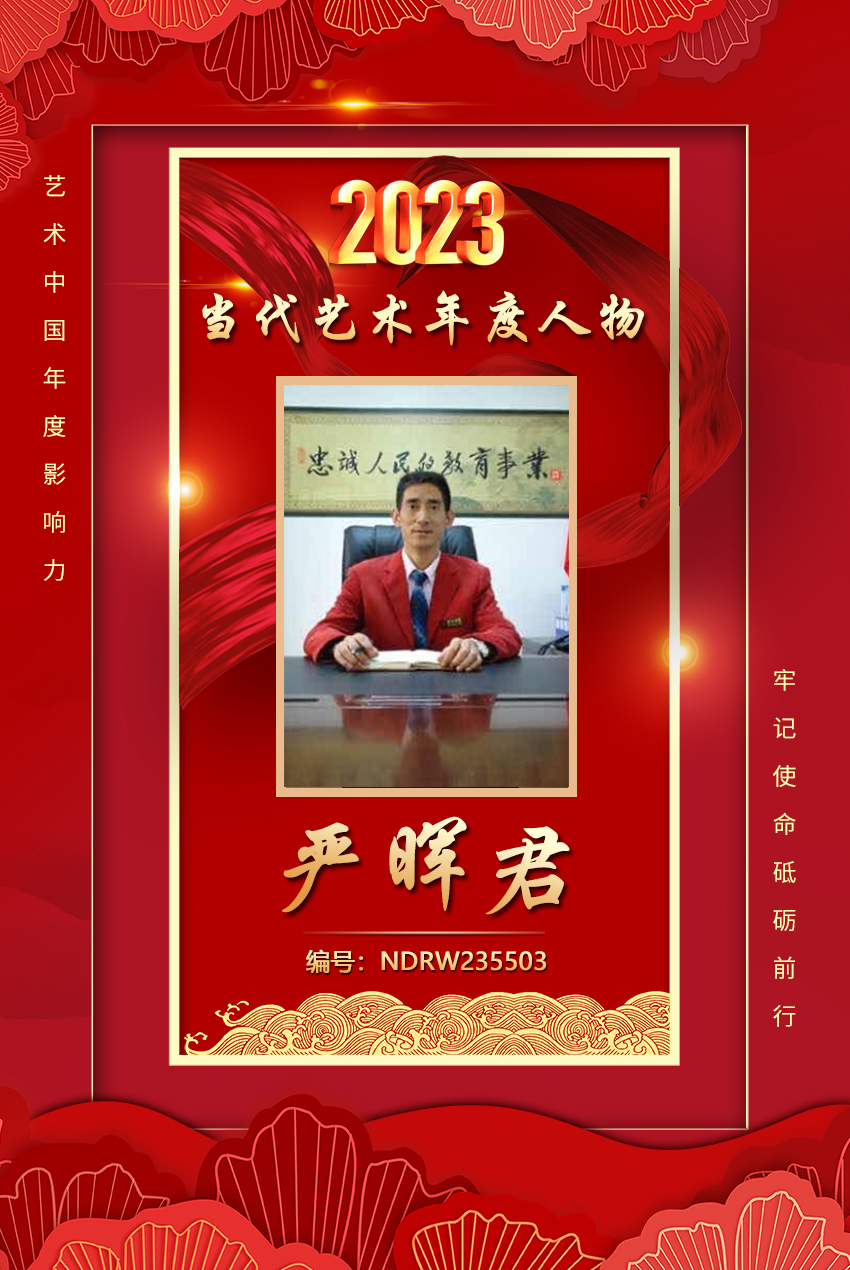 严晖君 1967.04.27出生于湖南张家界市 ,历任初级中学校长 ,中国硬笔书法协会会员 ,中国硬笔书法协会书画等级评定中心考官,并获得中国硬笔书法协会授予的全国大书法教育名师荣誉称号 ,多次获得中国硬笔书法协会优秀书法家荣誉称号 ,作品入展中国硬笔书法协会的迎春百福展 ,2023年荣获国家一级书法师职称及润格职称,中国共产党百年华诞风华百年展 ,多次获得全国书法大赛金奖 ,辅导多名学生参加全国书法大赛获奖 2018年创办广州市逍遥书院 担任院长 。