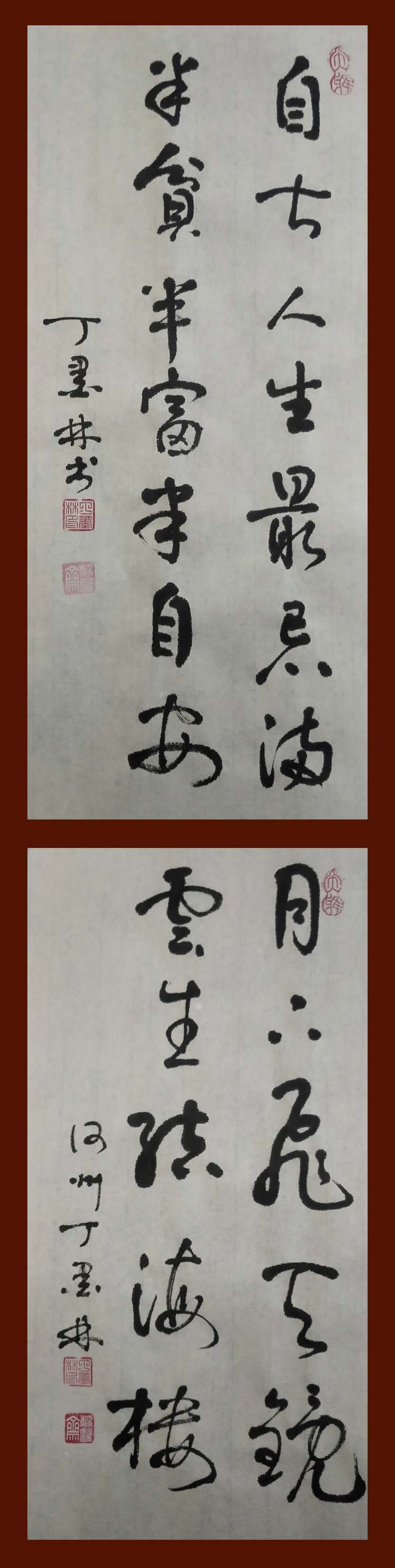 丁墨林书法作品经常被政府领导、拍卖机构、书画院、画廊、以及收藏界爱好者青睐收藏,作品得到社会各界朋友们的一致好评,目前一直沉浸在书法作品的长河之中,早晚不厌其烦的创作更加优秀的作品,为自己的酷爱而陶冶着书法艺人的情操,把书法艺术作为人生中的唯一精神支柱,用对书法艺术的酷爱以及崇尚的信仰,来谱写更佳璀璨斑斓的书法艺术篇章,传承中华5000年的传统文化。