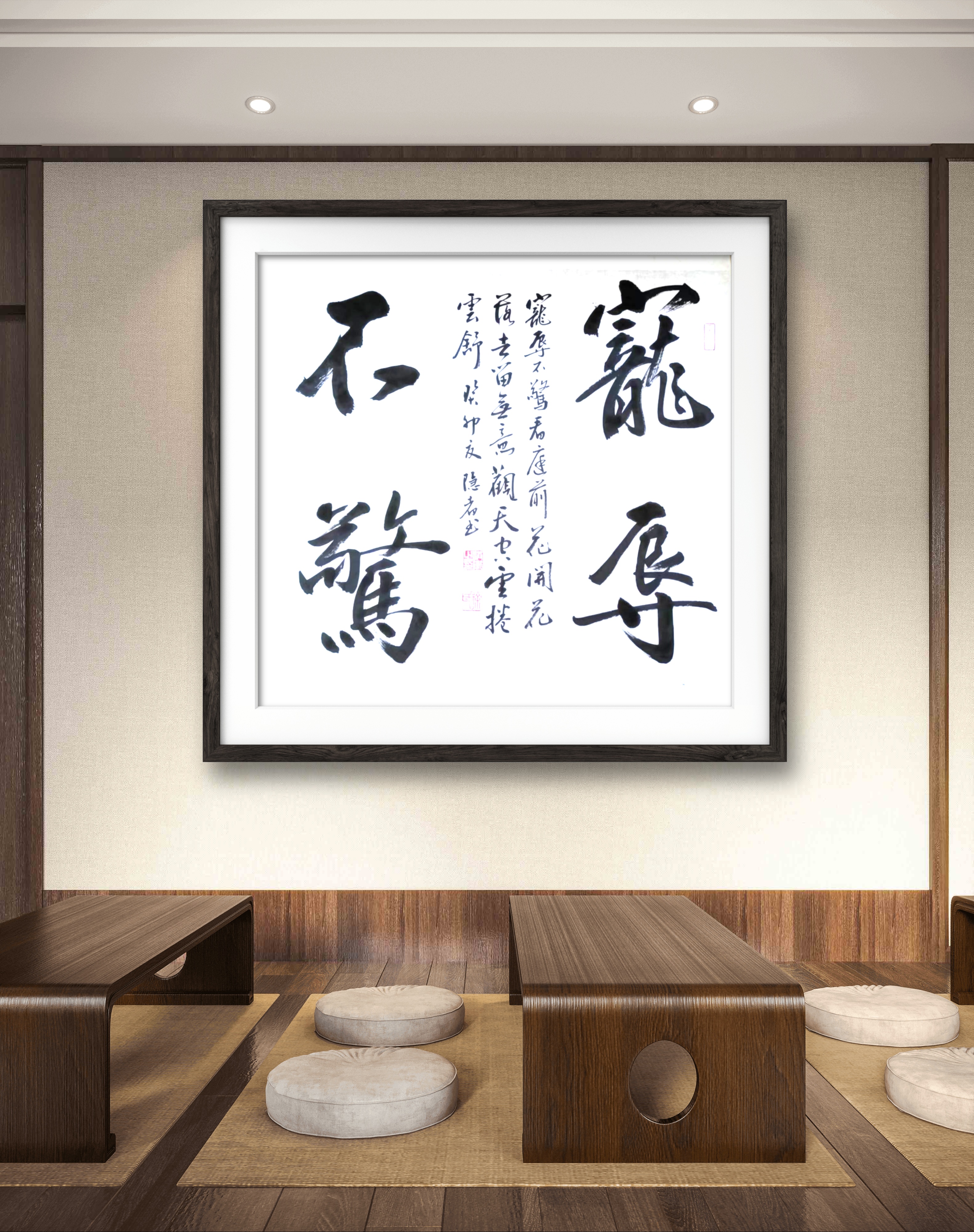 先生的榜书笔酣墨饱,跌宕起伏,拙朴古茂,气势磅礴,其榜书作品,有一种浑厚质感,并有疾涩的节奏。不局限于一笔一划的雕琢打磨,给人的感觉就是大气和外拓。其作品笔力稳健,端庄秀丽,大字气势雄奇,小字顾盼生姿,深受国内外收藏家追捧。