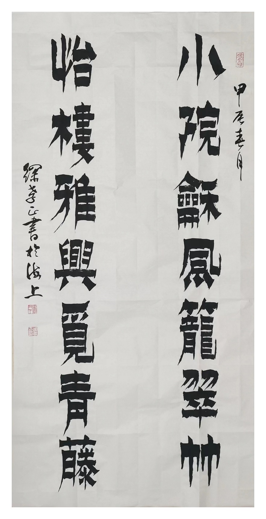 书法作品分别在上海图书馆,静安区老干部活动中心,长宁区图书馆,周桥文化中心、界龙总部园、江苏苏州大学、吴江市博物馆、深圳市宝安区粵港澳大湾区艺术中心、北京民族文化宫、日本奈良文化馆,意大利罗马国际艺术精品展馆展出,深受观展者好评,作品曾被中外多名藏家收藏。