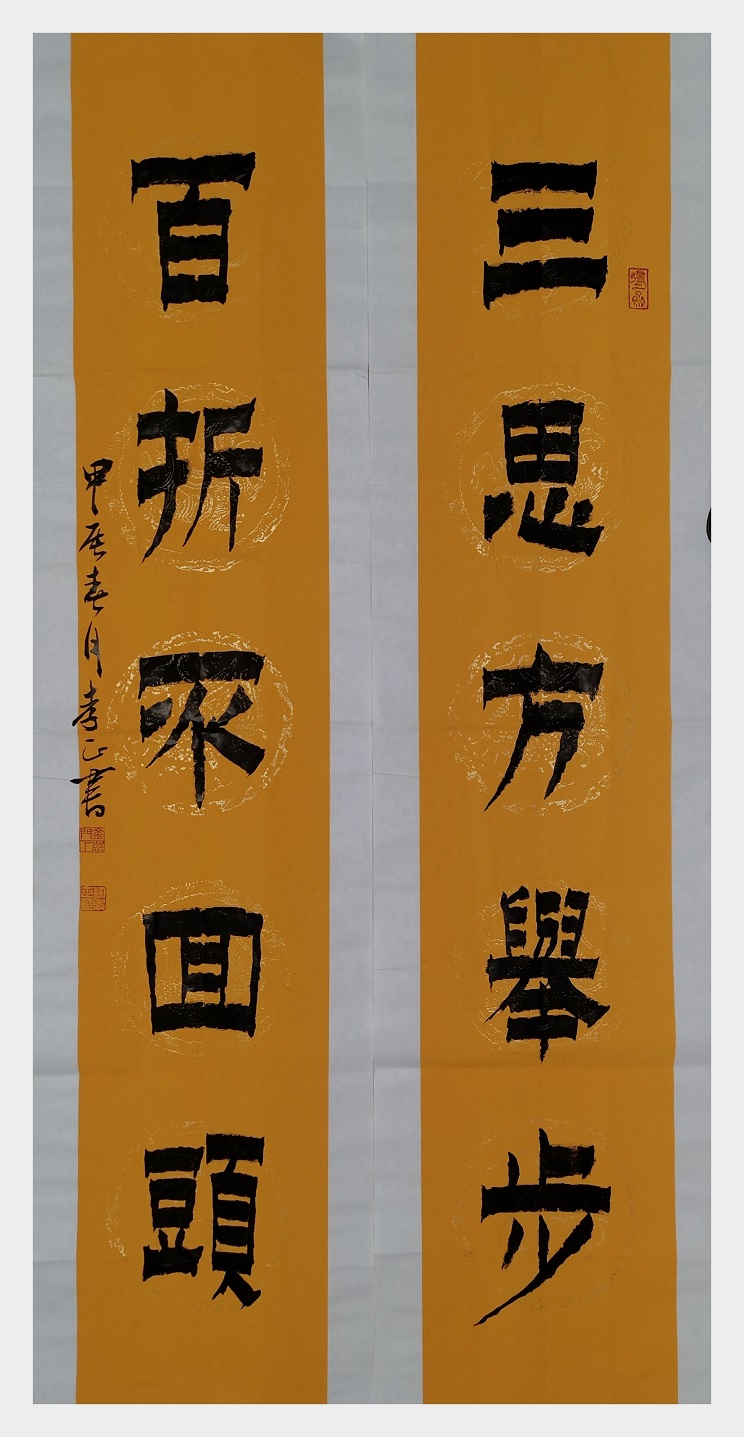 润德先生的漆书作品端庄、沉稳、大气磅礴,曾多次参加国内外、省内外书法大展,得观展者好评,被国内外多名藏家收藏,且被收入诸多书画作品集。