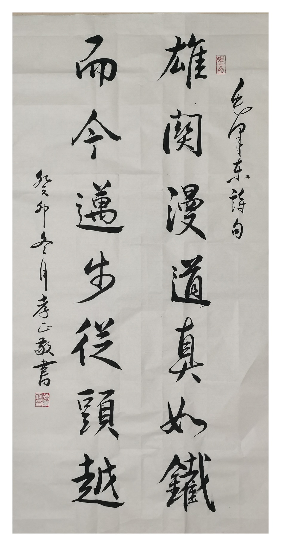 徐孝正:字润德,号得一斋主。一九五四年出生,中国人民公安大学毕业。中国书法家协会会员、中国国际书画艺术家联合会名誉会长、国际书法家协会理事、上海子墨书画院理事、国家非物质文化艺术传承人、首届金华表奖、中国艺术华鼎奖、一带一路国际艺术金球奖、世界杰出华人艺术家收藏奖获得者。