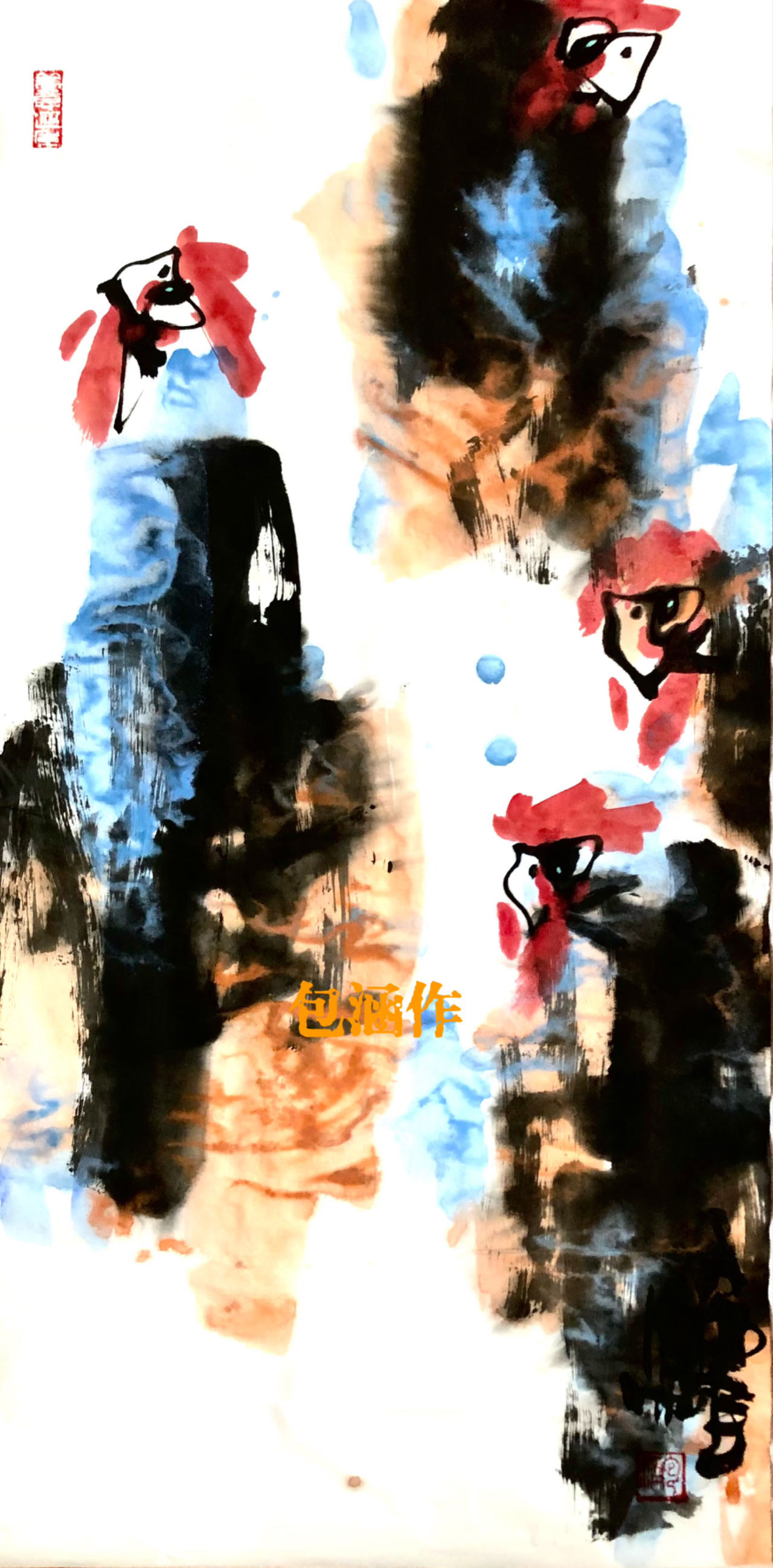 正因为是真正的艺术,具有阳刚之气,具有正大气象。因此,包涵老师迅速被国内外真正懂画的人所认可。他在多地举办个人画展,取得了巨大成功,他的画作被争购、争藏,很多画马的画家学习包涵的画法,有的完全照搬,有的边学边变化。总之,包涵老师潜心研究作画,为开拓中国当代大写意花鸟画的创新之途指明了前进的道路。