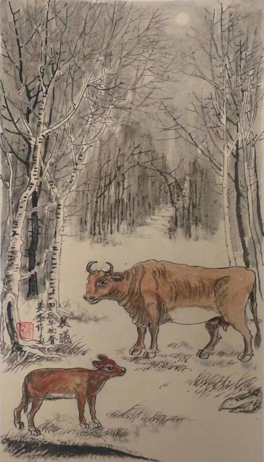 1989—1990年间在朝阳龙城画院大赛中《牧牛河畔》、《夕晖》均获得一等奖
