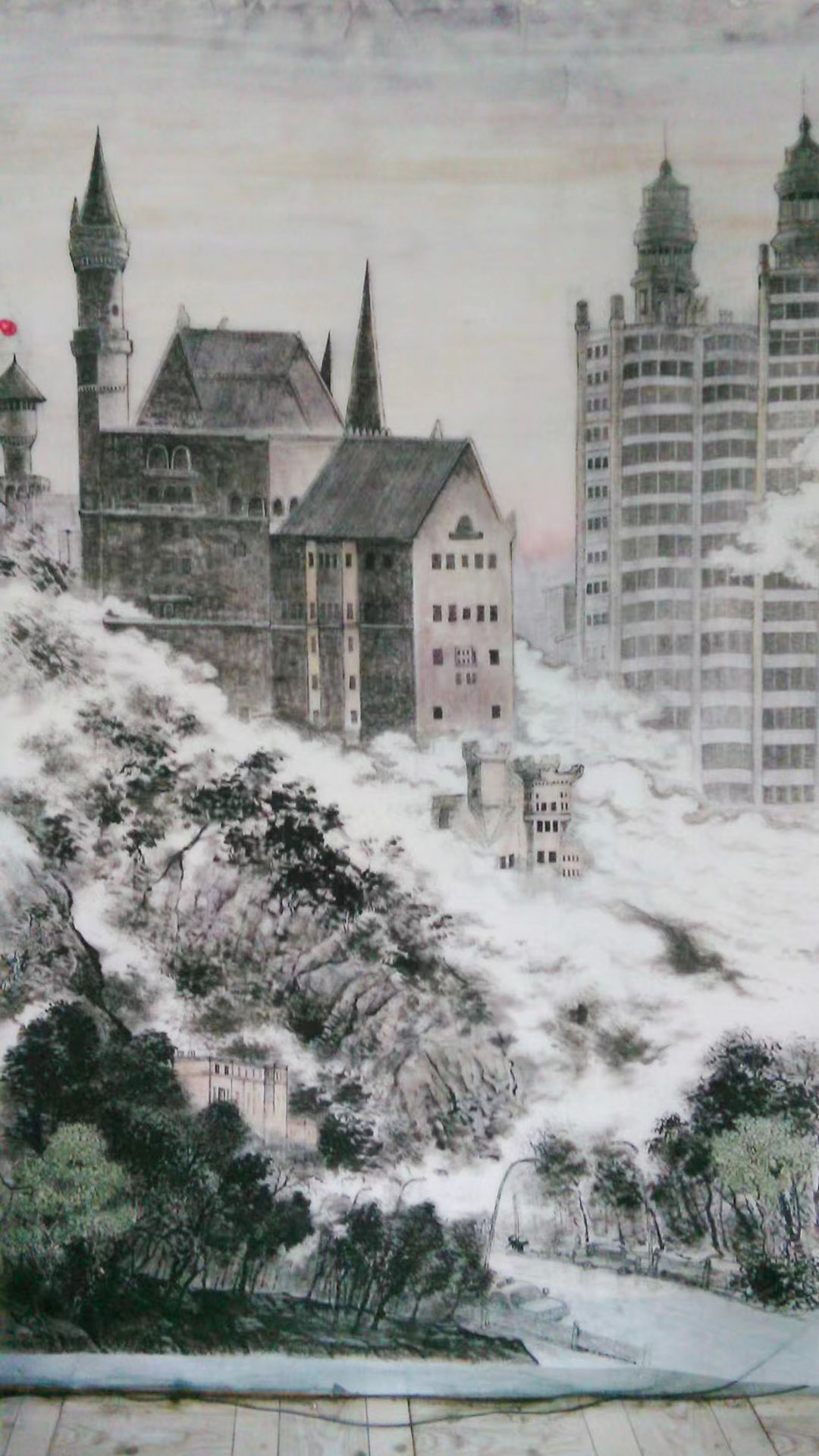 1997年 迎香港回顾书画大赛中《峡谷激流》获得一等奖