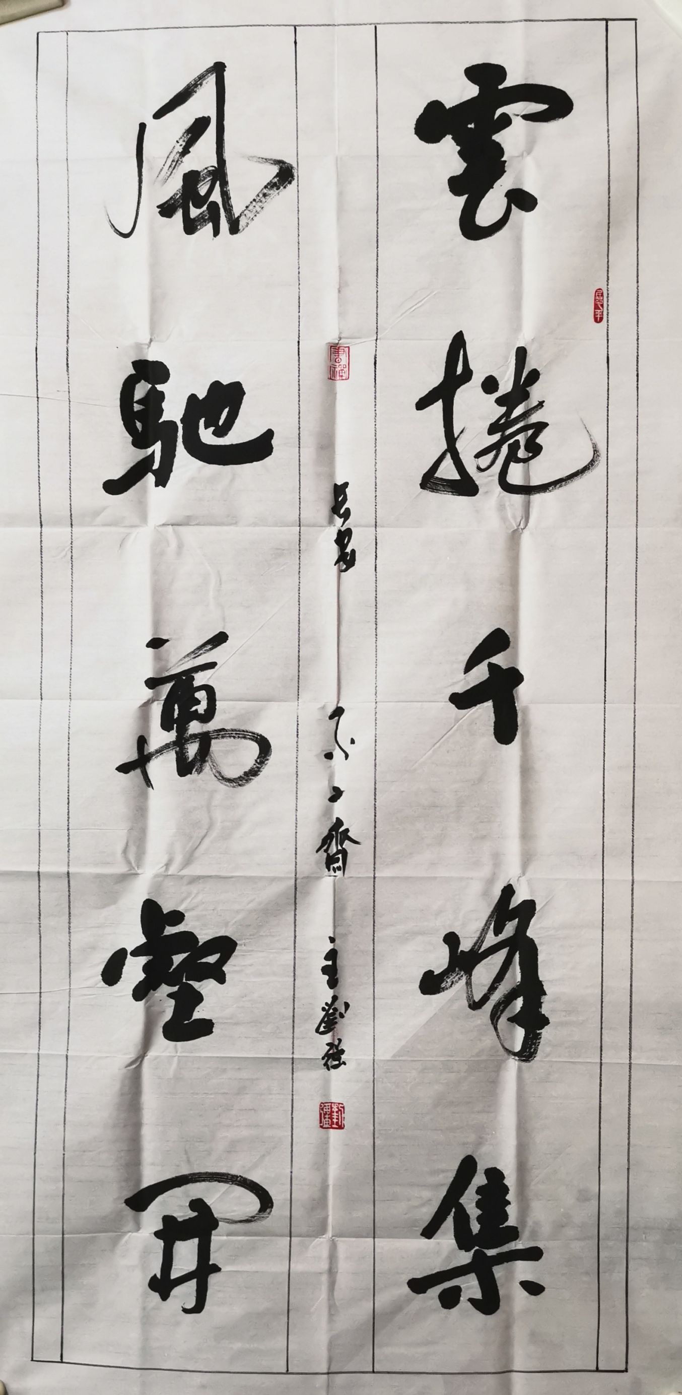 简介:书法师从胡文华老师,研习《颜勤礼碑》多年。1996年参加中国书法函授培训圆满结业。行草始于陆柬之,有幸得到焦军昌、麻天阔,唐永平等诸多老师的指导,多年来参加省、市、区、新区书协组织活动,为群众书写了大量作品,受到大家喜爱及编赛出版书集和收藏。