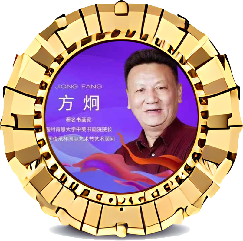 方炯,字尙志,号松山樵夫、松溪闲人,称心阁主人,出生于书香门第,现任温州肯恩大学艺术设计系荣誉教授,中美书画艺术研究院院长,美国全美浙江总商会荣誉会长,温州市一带一路企业发展联合会荣誉会长、书画院院长。