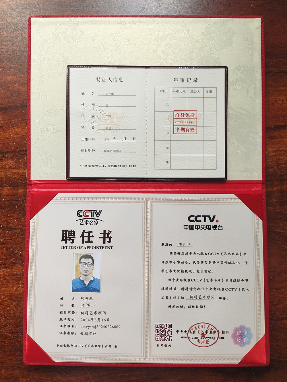 陈升华,男,生于1981年,河北省清河县人,现居北京。毕业于河北美术学院书法专业,中国当代实力派书法家。