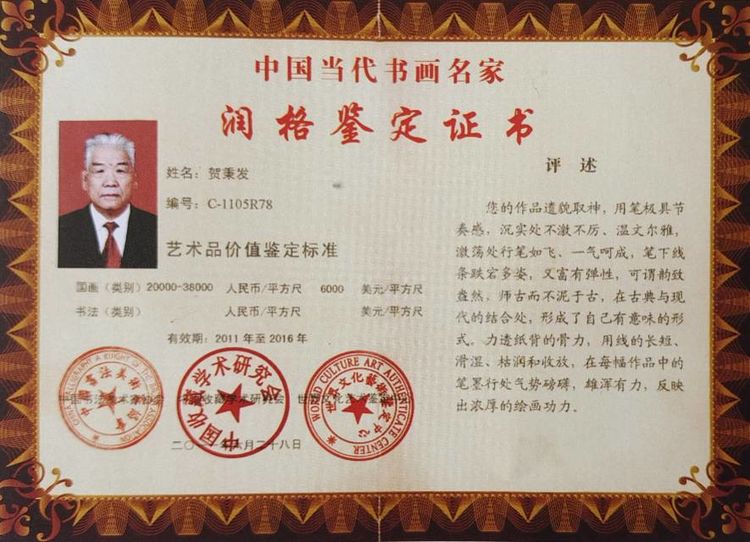 贺老的书画作品历年屡获国际、国内书画大奖,远销多个国家和地区,被世界多个国家和文博机构收藏。他的作品被视为“书画绝技之星”,备受推崇。不仅如此,胡耀邦总书记还曾为其亲笔题词:“华夏一绝、陕西一绝、书画一绝”。