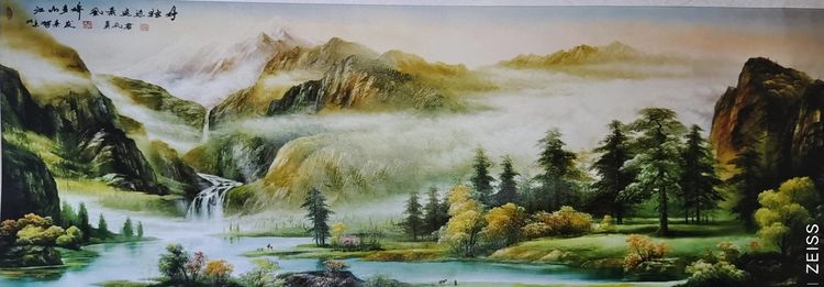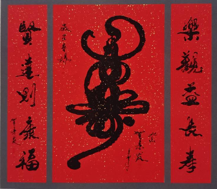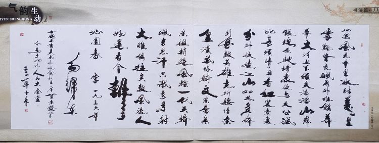 贺老的书画作品风格独特,笔法多变,虚实结合,相得益彰,自成一家。他的国画艺术苍茫悠远,层次分明,色彩丰富。而他的书法更是雄浑古朴,坚强有力,变化自如,艺术风格独特。真、草、隶、篆四体皆工,线条流畅。他独创的噙笔、扣笔、耳笔、双肘运笔、鼻孔插笔多笔齐书的独特技巧更是令人赞叹。