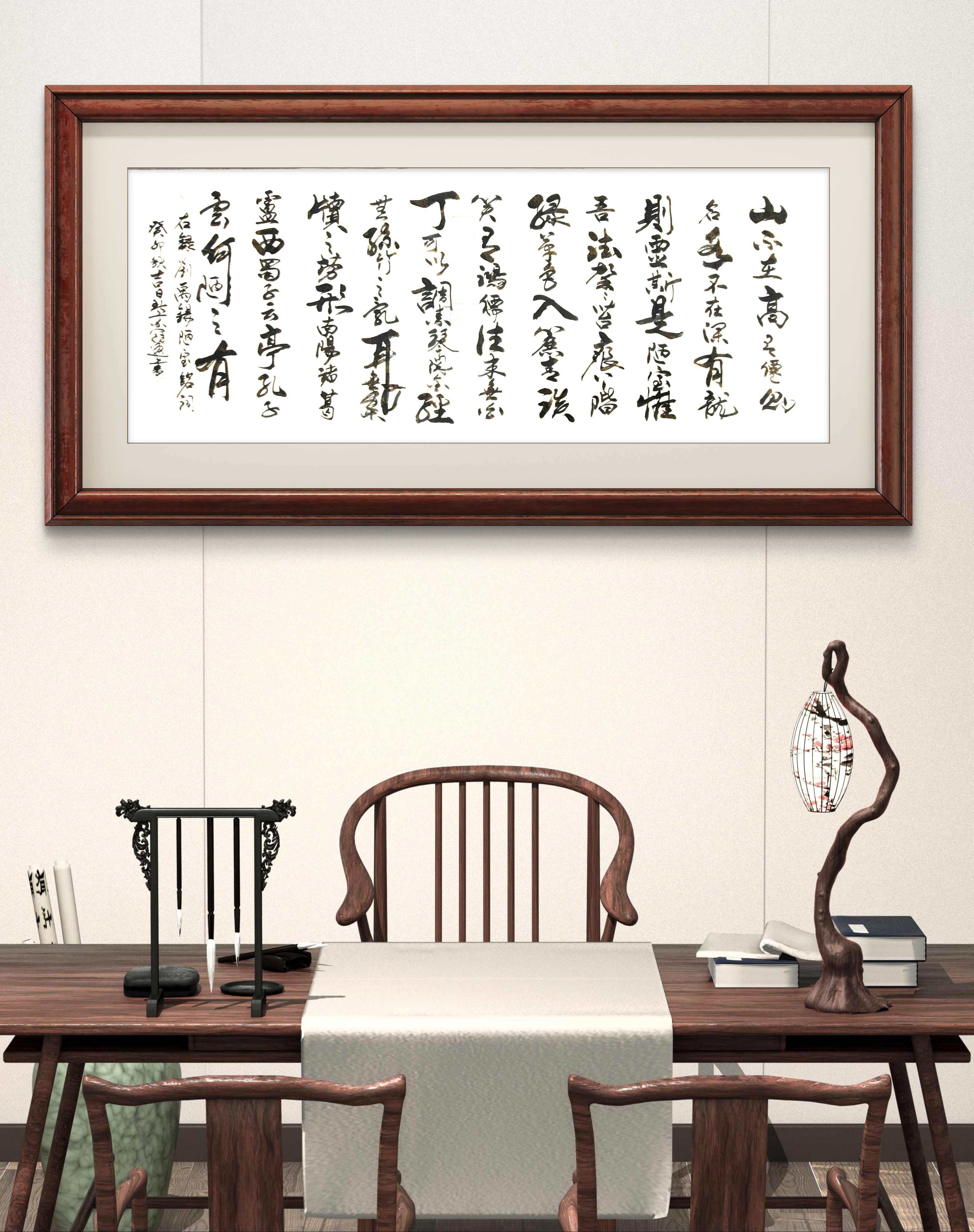 先生的书法作品,运笔流畅,结构严谨,笔法洒脱,苍劲有力,有拔山举鼎之气势!章法布局合理,一挥而就,“形、神、骨”尽出!一气呵成,赏心悦目!尽承欧颜之风,袭米黄之气,法昌铎之骨,效二王之神;不蔓不妖,观之有芝兰之正气,赏之有梅花之傲骨!铁骨铮铮,铿然有金石之声;其行笔气韵潇洒,如行云之流水,似无弦之韵律!真可谓:挥笔惊风雨,铺纸现乾坤! 被誉为:“当代王羲之”。真正做到了“书中有画,画中有书”。