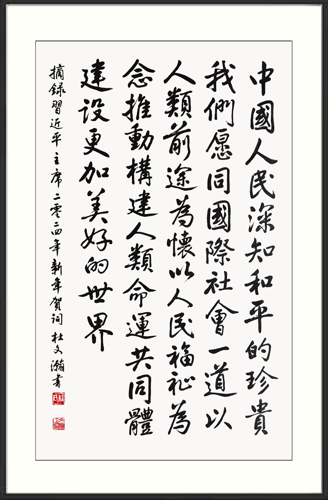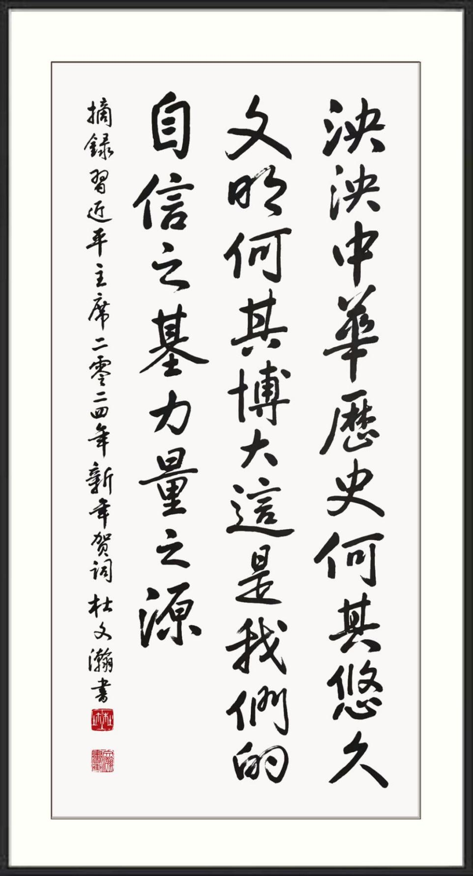 杜文瀚(汉)1942年生于天津,中国书法家协会会员,国家一级美术师,高级书法家,国礼艺术家,中华人民共和国书画大家,瑞典皇家美术学院荣誉博士,中央美术学院客座教授,博鳌亚洲艺术人才研究中心研究员,中国书画家协会终身名誉主席。其绘画作品涉猎多个画种,中西融合,画风严谨。书艺取法高古、上追秦汉魏晋、熔铸历代名家精华,书法创作敬畏传统,功力深厚。在创作中坚持真善美的格调,古拙端庄、俊秀洒脱的书风。书法作品具有浓厚的审美理想和浪漫精神以及强烈的时代风貌和独特风格。