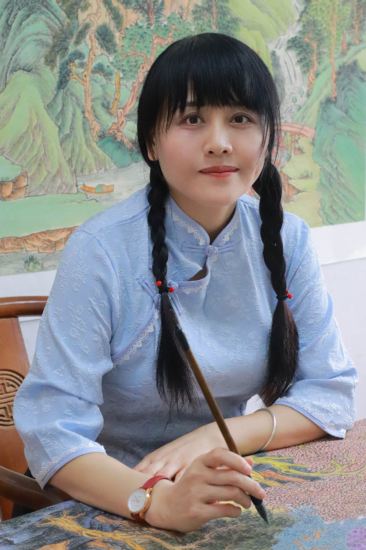 在完成这幅画作后,我对矿物颜料重彩的设色方法有了更深的理解。这种方法确实能够让画面更加明艳,但同时也要求画家在技巧上更为精湛。我意识到,要想用矿物颜料达到理想的效果,不仅需要对颜料的性质有充分的了解,还需要在实践中不断探索和尝试。