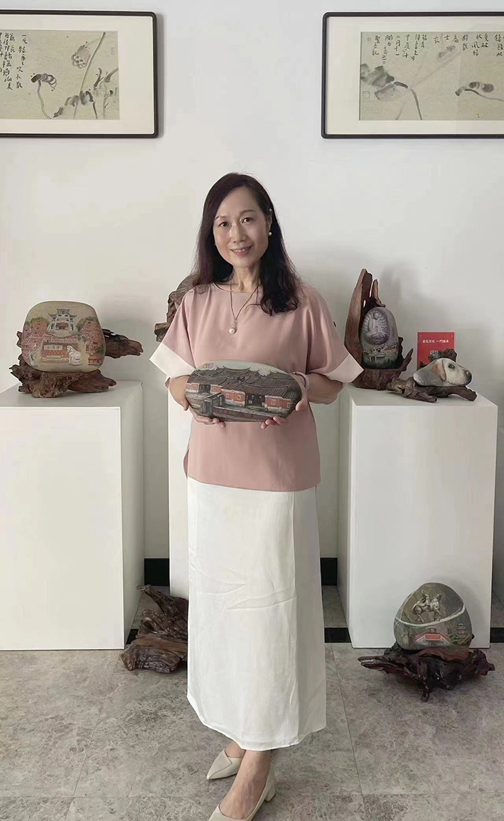 蔡盈盈,来自香港,出生于福建晋江。福建省第六届工艺美术名人,泉州市民间文艺家协会会员,晋江美术家协会会员,晋江市工艺美术协会理事。从事树脂工艺品设计三十多年,产品销往世界各地。由于对绘画的热爱,2019年成立了“倉石文化.一門美术”创作了系列地方特色和民族风情,寄寓美好生活追求的石画作品,把中国传统吉祥元素融入石画之中,并得到了福建综合频道,晋江电视台、晋江经济报、石狮日报等多家媒体的报道,作品《古厝》荣获2022年11月6日(中国)大连国际文化旅游产业交易博览会“中艺杯”工艺美术作品大赛银奖;作品《草庵》荣获2022年12月8日泉台两地根艺行业职工技能竞赛综合类工艺优秀奖;作品《闽南高甲》荣获2023年3月23日福建省工艺美术创意设计大赛银奖;作品《乡情》荣获2023年8月1日(中国)大连文化旅游产品交易博览会“中艺杯”工艺美术作品大赛金奖;作品《锦绣前程》荣获2023年福建省工艺礼品与手工精品展暨“福艺杯”铜奖。