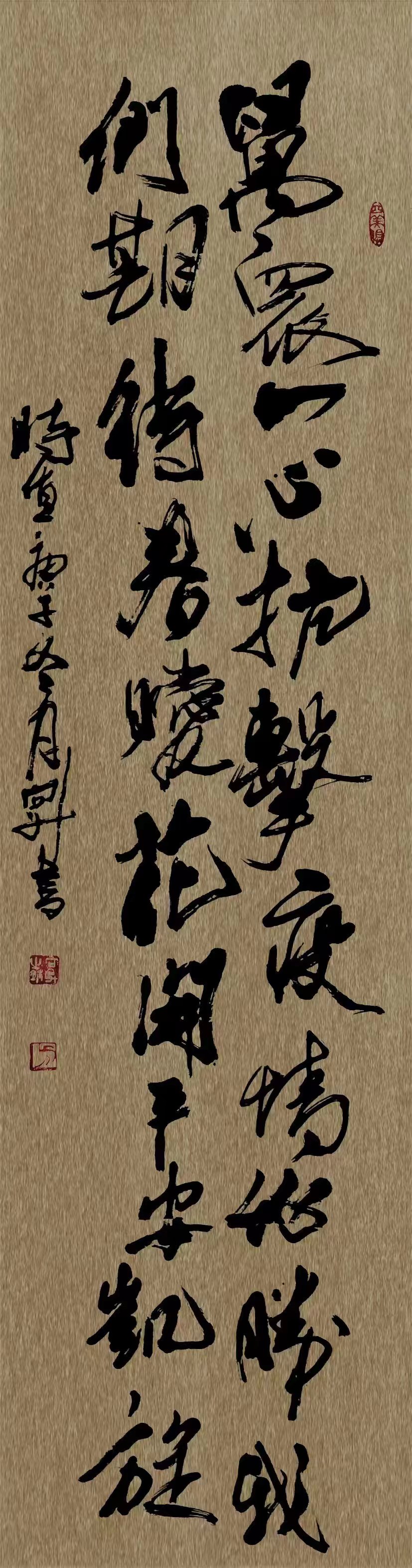 众幅书法真章,更觉撼人心神!方向升先生书法取自二王根基,又有黄庭坚、米芾等人余韵,此实乃一点一画,皆从法贴中来,然后遗貌取神,遂自成于家数!故观其书作,纵笔挥毫是如龙蛇之奔走,更似劲弩之筋节,帖学取法,播布研精,调和笔墨,锋纤往来。常言魏晋风骨,想来便也就是有同于方向升先生的书风气象!诗词写就,耀质含章,纵览之余,犹品高怀,书写潇洒风流遗之韵,彰显尽变穷奇谓之趣。这可真是笺麻素绢排数厢,须臾扫尽数千张!