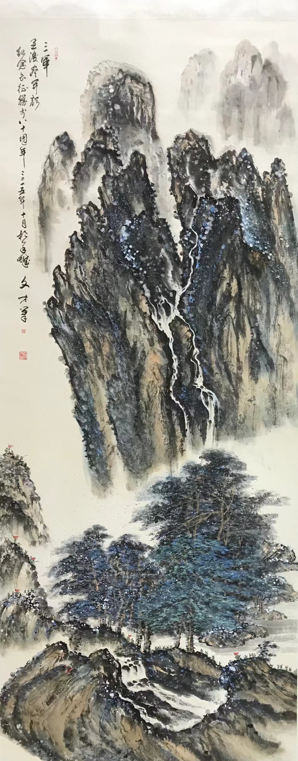 在神往自然中使性情归真,这正是杨文才先生绘就山水篇章的精神宗旨!他深知书法之道在于读万卷书,方能摆脱匠俗习气,挥毫自如;同样地,他也深刻理解丹青写生需行万里路,以领悟立意的真谛。所以你看他的几幅山水画作,画中都是能将北派山水的雄奇和南派山水的秀润相融合,是谓搜尽奇峰打草,使之丘壑神韵皆能蕴于胸中,再到笔着纸时,直追出心中之画!山水灵奇,用意古雅,一幅之中可见云烟曲径通幽处,又有林泉岩扃致虚极,绘就的正是苍翠之景象,抒发的则更是驰目骋怀的忘我胸怀!
