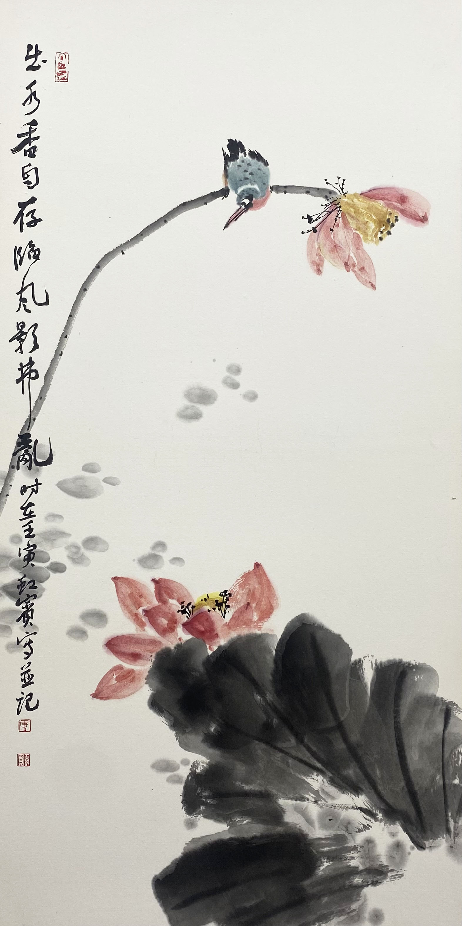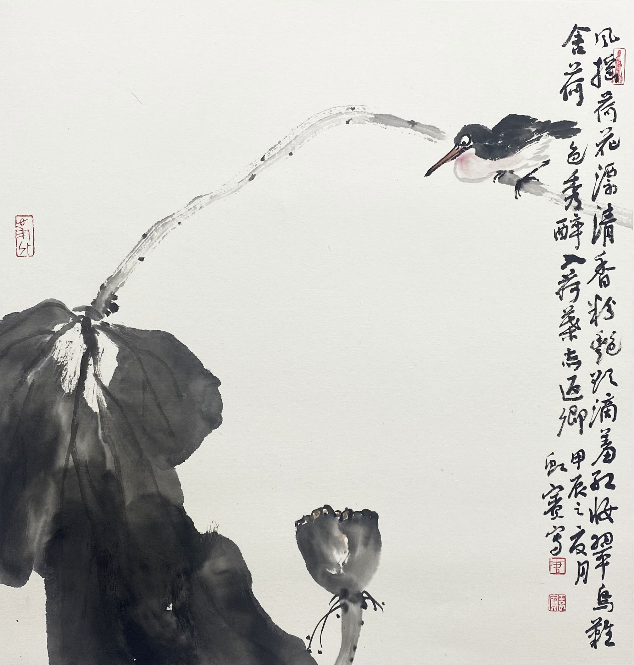 其作品题材广泛,无论是山川河流的雄浑壮丽,还是花鸟鱼虫的灵动活泼,在他的笔下都被赋予了鲜活的生命力。他擅长运用简洁而富有力量的线条,勾勒出物体的轮廓,再以浓淡相宜的墨色渲染,营造出一种虚实相生、空灵深邃的意境。每一笔、每一墨都仿佛蕴含着无尽的情感和故事,让观者在欣赏画作的同时,不由自主地沉浸其中,感受到大自然的魅力和生命的韵律。