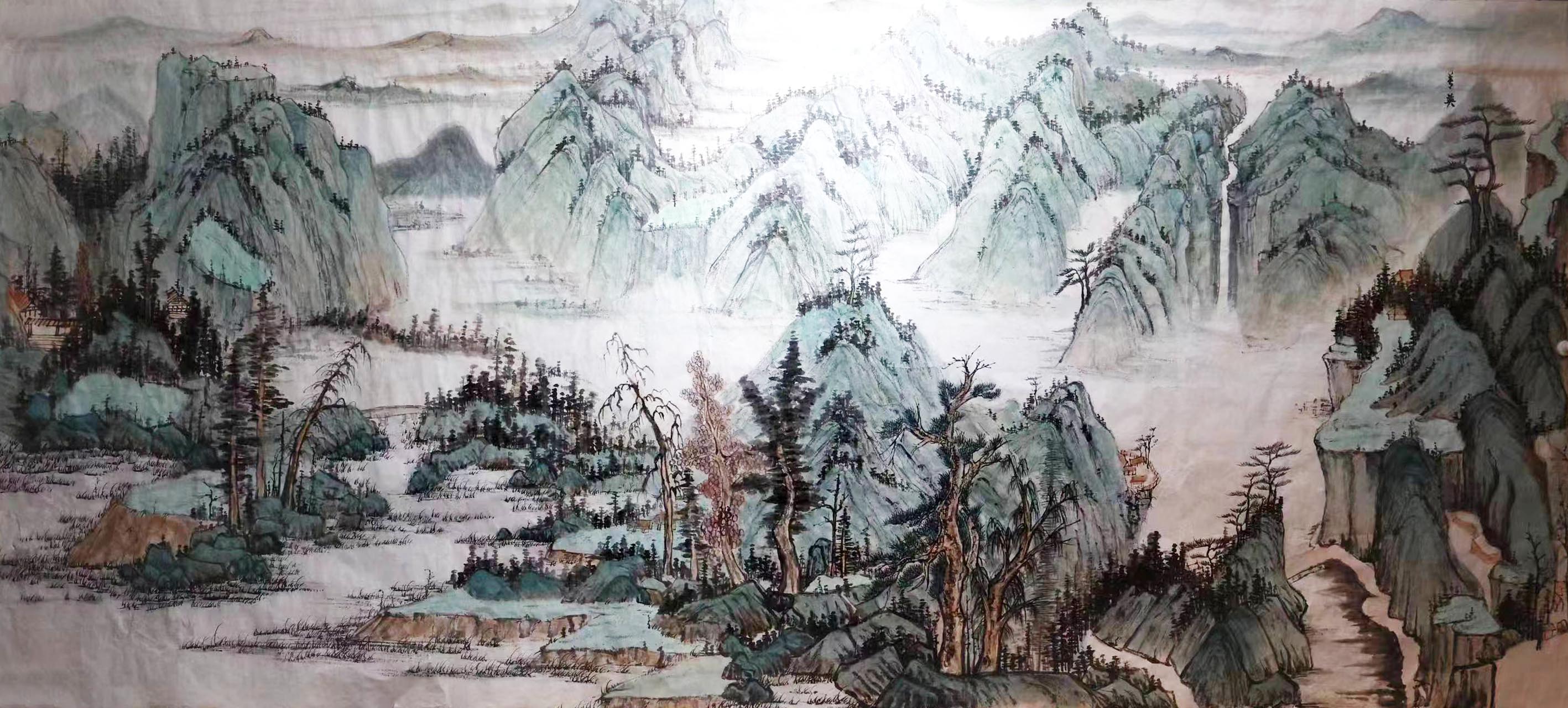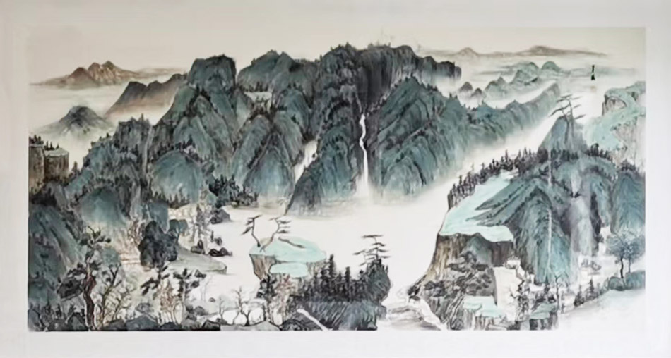 隋善英的山水审美,始终是以传统为根基,又以心源为法度,笔触于自然之间,墨涉于超逸之内,诚是真情入境,澄净至臻。纵观其众幅山水画作,其作中风格是融合了传统的水墨写意和现代的墨彩审美,画中山水具传统而又不失于意象,具灵动而又不失于法度。实谓尚古求新,独显个性。与其说隋善英女士是一位画家,不如说她是一位极具创造性的丹青艺术家!画中无论是墨与色的交融,还是线与法的互补,亦或虚与实的相映,在其手中,皆得到了完美的呈现!不仅如此,其众幅山水作品更是能在传统精神的基础上,展现出一种近乎于自由意象的画面深度。雅俗共赏,耐人寻味。