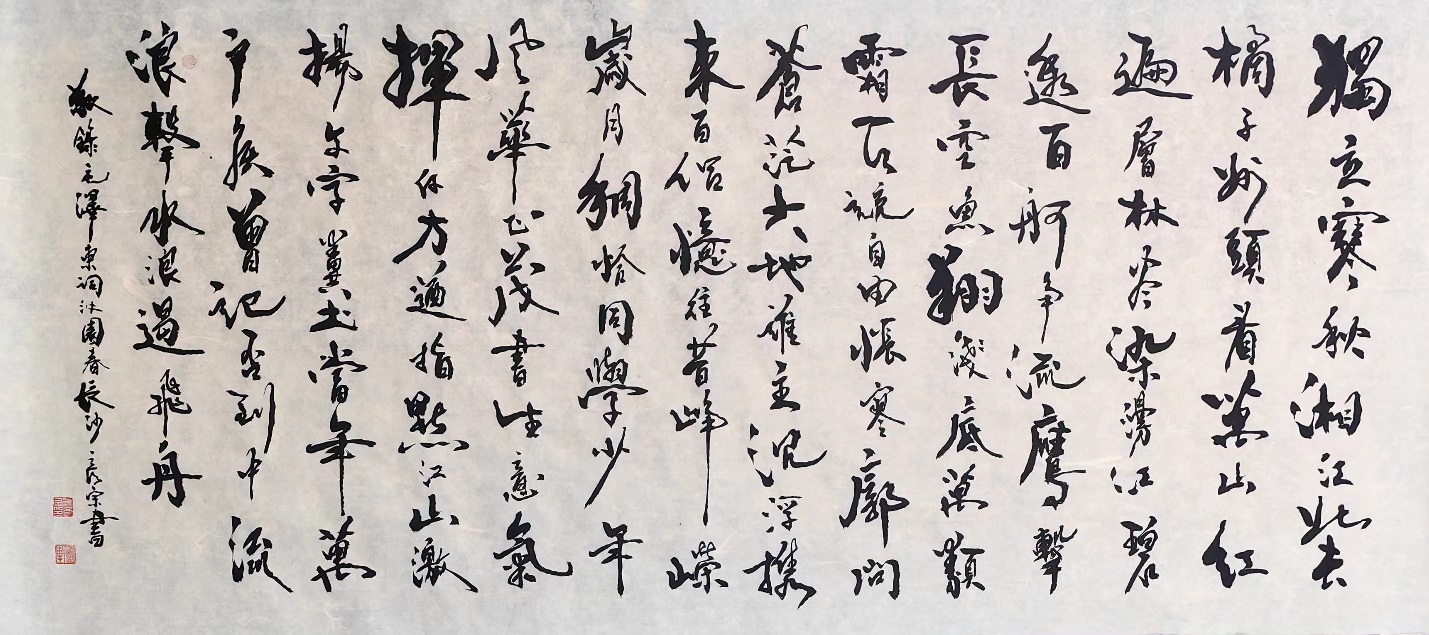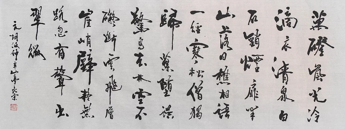 所以即便是不懂书法的人,在第一次欣赏缪彦宗先生的书法作品时,也总是会感受到一种无法言说的文人之风和君子气概!一幅挥毫行云流水,观之如品清茗,可随笔墨行运之变化而感书家之心弦,由此也是完美诠释了什么是“真在内者,神动于外”的翰墨妙境!脱去摹似之蹊径,直追古人之玄机,用笔在于奋斫则见气势之开张,取势在于潇洒又见疏密之相附。字字劲者如武夫,欹斜如醉仙,此正如清人冯武所言书论,即书道玄妙,必资于神遇,不可以力求也;机巧必须于心悟,不可以目取也!而今缪彦宗先生的众幅书法作品,亦属此道之典范,可谓当之无愧!