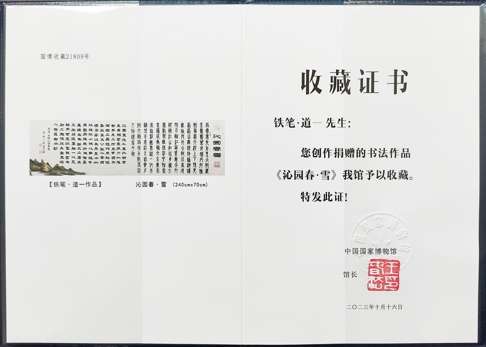 被业内誉为“铁笔大师”,其书画作品载入《二十世纪中国著名书画家》大辞典,《中国百杰艺术家作品选集》并荣获“世纪功勋艺术家”称号、作品在众多个省级美术馆展出并收藏。