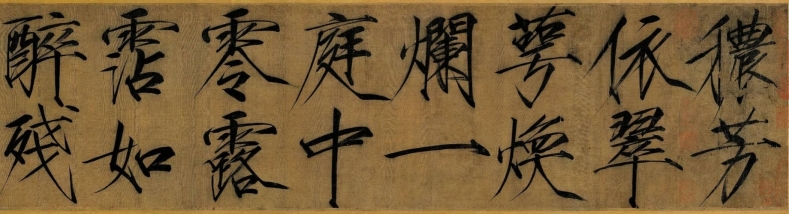 宋徽宗在长期的书画艺术艺术生涯中,在学习唐代书法家薛稷、褚遂良的书法笔意基础上,创造性地形成了自己独特的书法艺术风格,将褚遂良的纤细笔画特点结合薛稷柔美的书法笔意,加入自己飘逸顿感的笔画特点形成了特点鲜明的瘦金体风格。