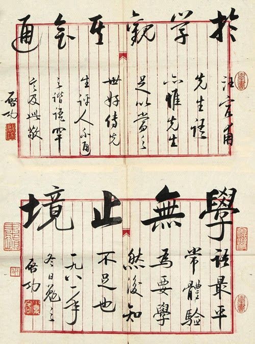 如果把启功书法完全归纳为瘦金体书法确实有点牵强。但是,说启功书法为瘦书体,具备瘦金体的基本元素一点也不夸张。