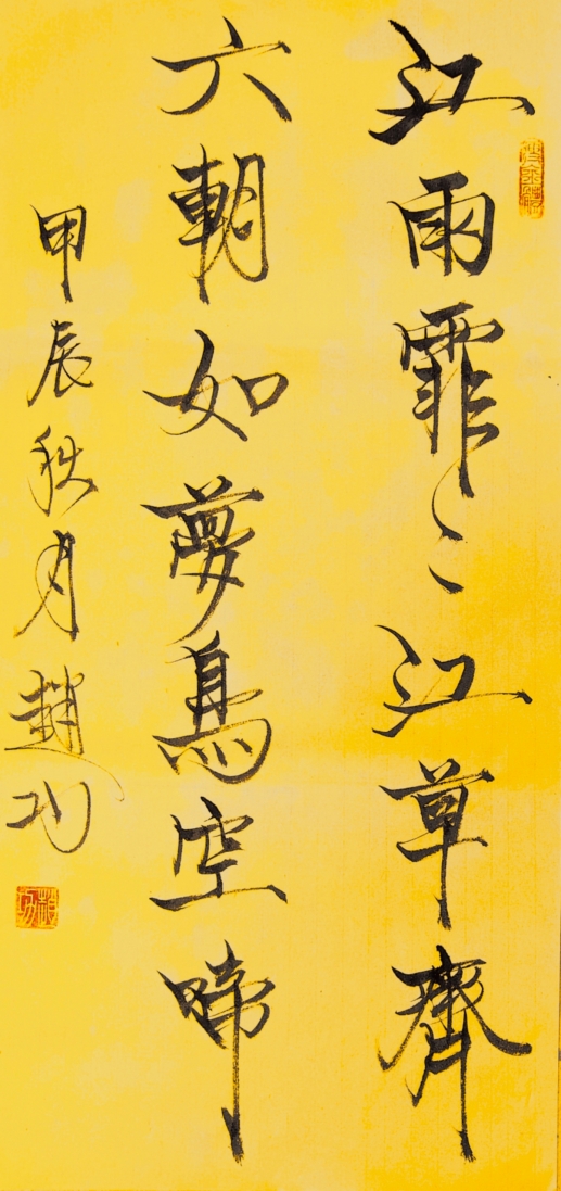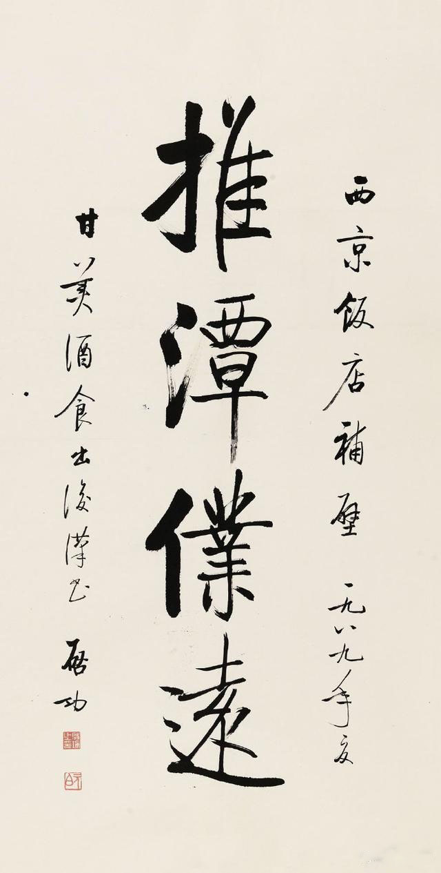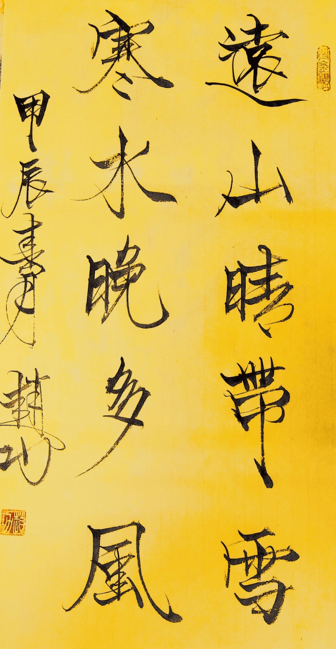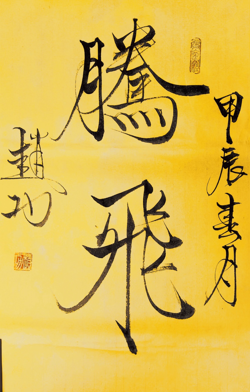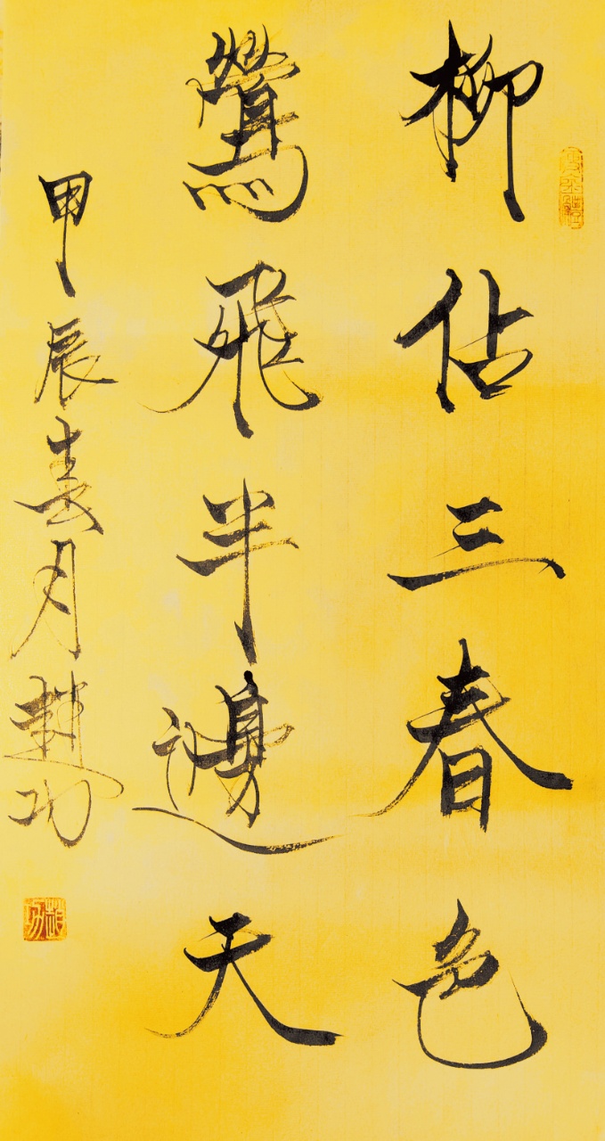 在笔法上,保留着瘦金体的竖画之顿笔、撇捺之飘逸,增加了工整和刚硬力量感。更重要的是,突破了瘦金体写小不能写大的瓶颈,把瘦金体带进了榜书,写进了馆堂匾额,极大地拓展了瘦金体展示的领域。