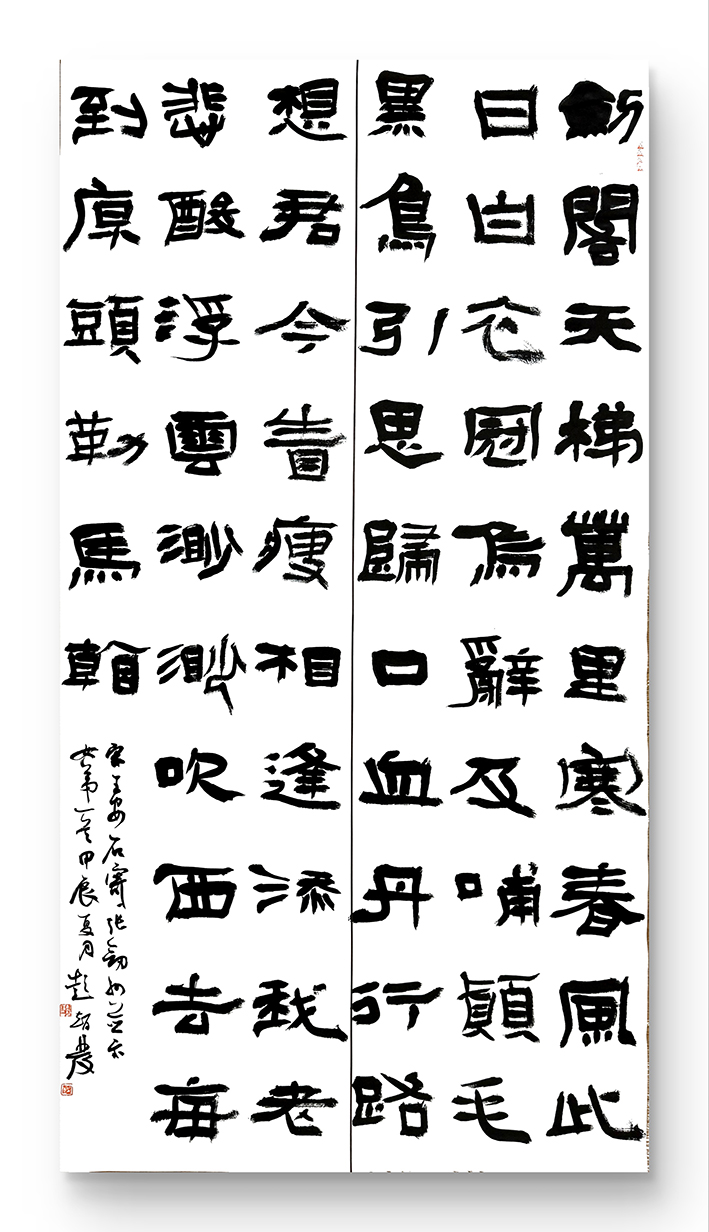 承习隶篆金石气,行书纵笔展文风。当代书坛的发展,需要依靠像智发兄这样的实力派群体激浊扬清,要靠他们去传承和创新。当下习书者趋名附利不少,而耐得住寂寞、韬光养正者少,然只要秉持书法正道,相信业内同智发兄一道的书法家,必然也会越来越多。持续深入继承传统,精进书写翰墨正宗,又能躬耕培育桃李,为后来者树立艺术家标杆,树之为勋猷,立之为节操,智发兄所展现出的翰墨文化意义,可谓是深远而重大!