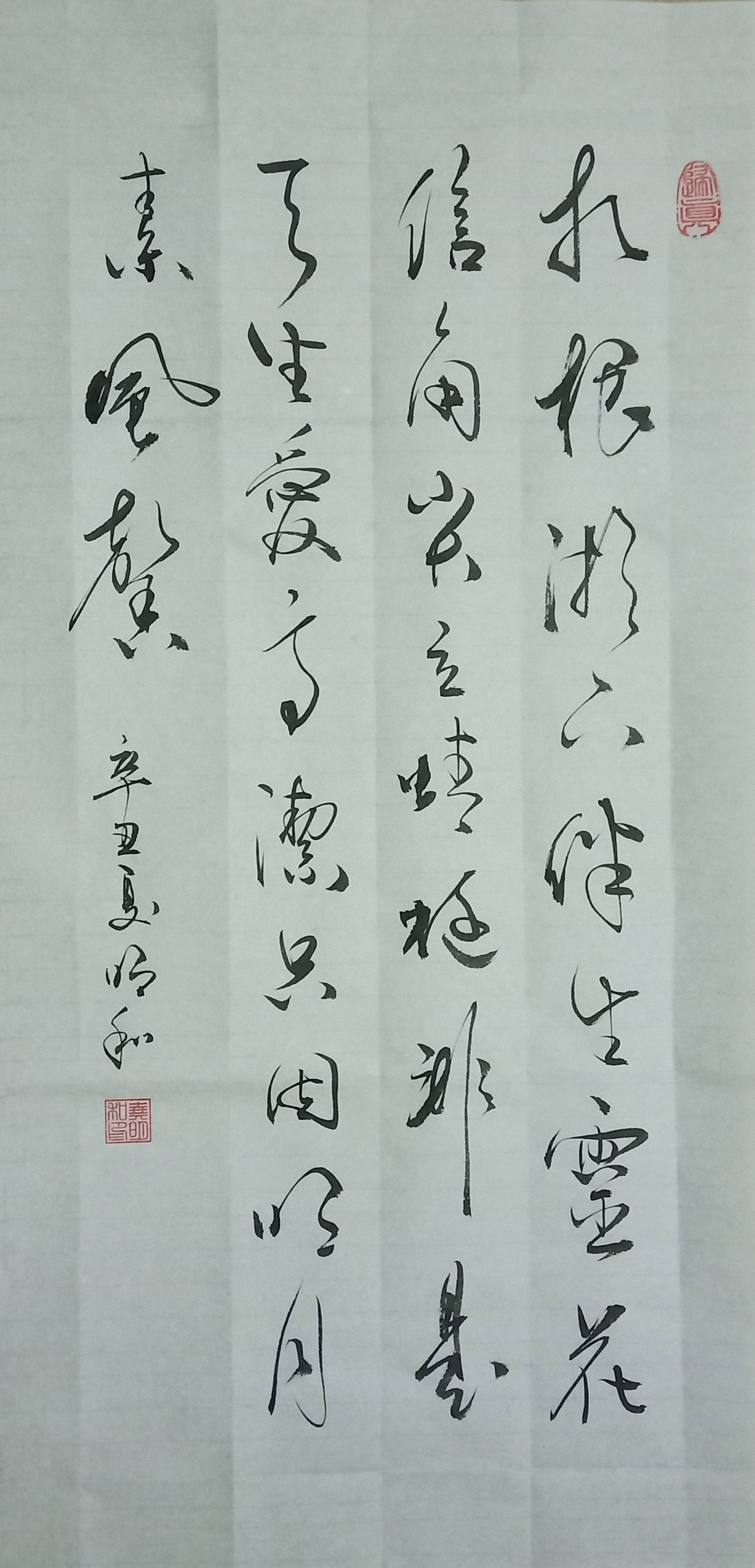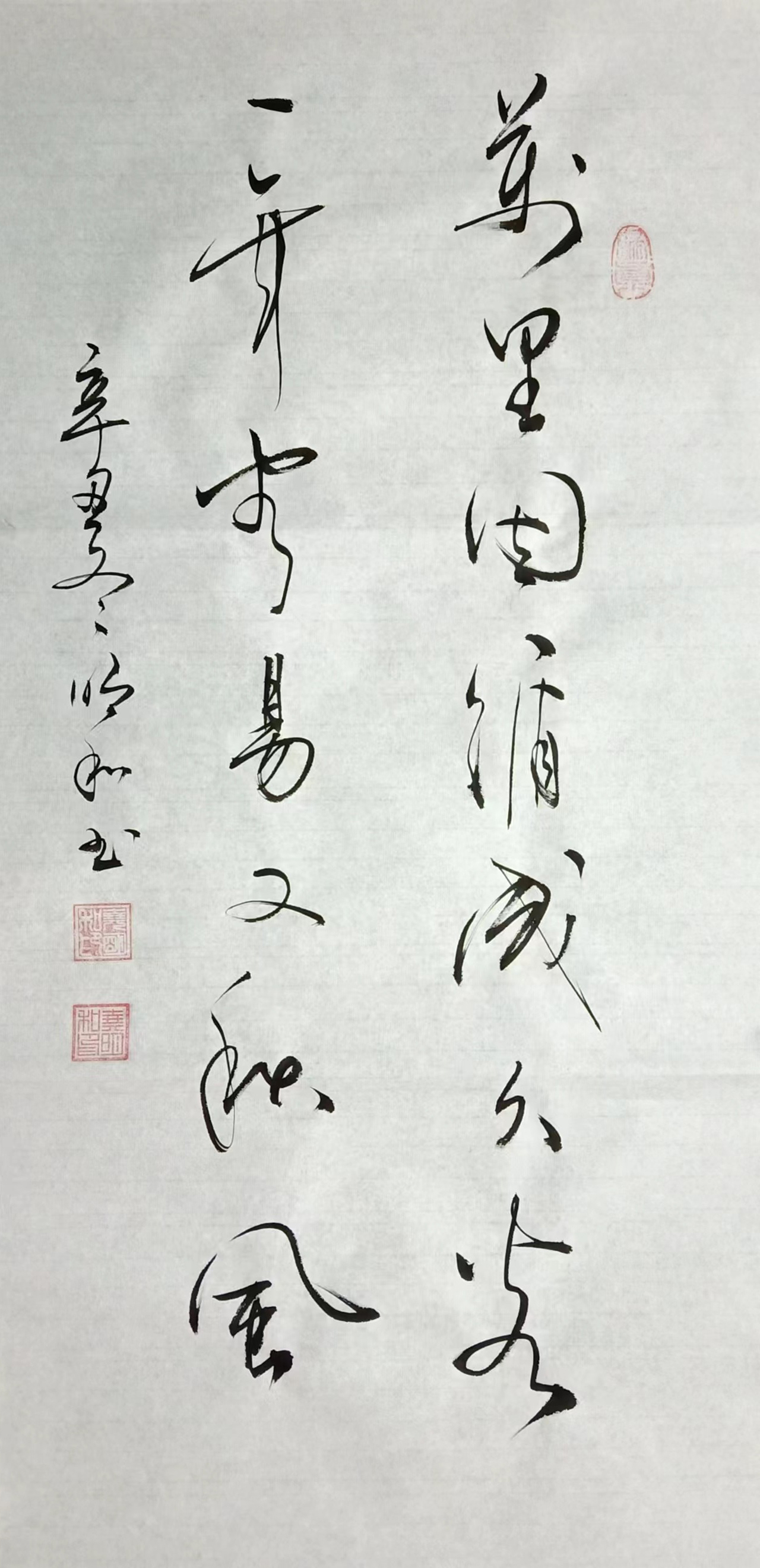 幼时以楷书入手,然后学二王入行书,渐之融米南宫的灵秀动于其中,尔后熔文衡山的儒雅丰其神采,之后更以瘦金体笔法入纸,遍采千百年来行草名家之长熔炼于一炉。其书风在大开大合之余不失其严谨,其笔意在一笔一画之间可见其绵长。临书习书而不呆于法,读帖研帖而不锢于形。于雄放豪迈中见古朴,于清新典雅中见端庄。