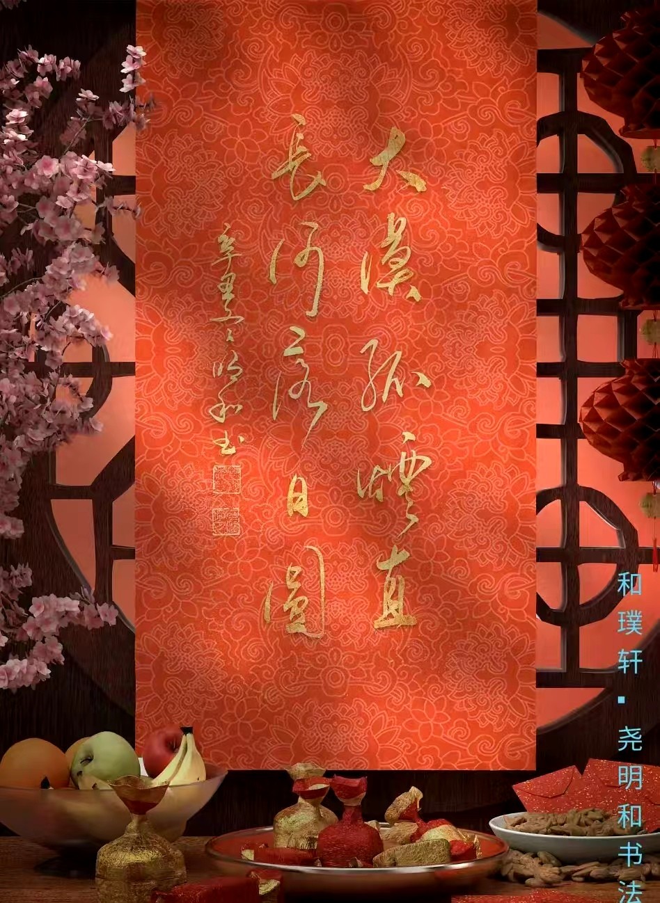 尧明和也是一位诗人,尤以五言、七言绝句与小令见长,擅长通过文字刻画一些转瞬即闪的画面,写一些清丽隽永的场景,如“榕下扁舟嫌久置,笑邀过客叙风尘”等,简单的文字与朴实的语言让人颇有身临其境之感。其情诗将心中的爱意抽丝剥茧般描述得绵绵难尽,或以景言情,或以情托景,如“树叶无声飘一片,置卿枕畔作书签”等,读之令人动容。是当今为数不多的能达到诗书合一之境界的书法家。其自书诗词价值尤高,有极高的艺术欣赏水平,诗与书交辉相映,赏心悦目。历年来为各大博物馆展览馆所喜欢收藏展示,具有一定的收藏空间。