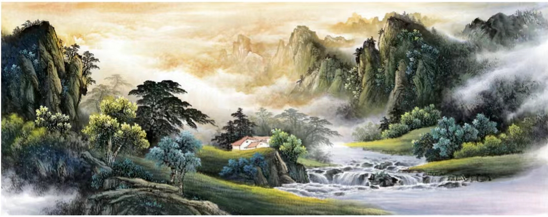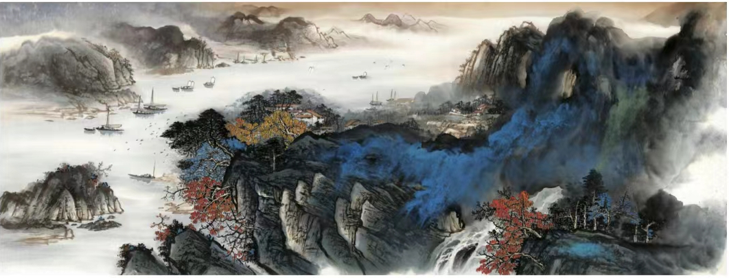 陈熙道秘境山水泼彩作品《山水禅音》