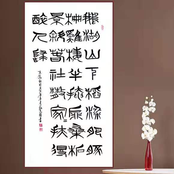饱览名山大川人物之神韵流畅于笔墨之端,创作和培养了自己独特的艺术风格。自幼喜爱书画篆刻摄影,转益多师,学习和研究陶瓷、铭文、墓志、甲骨文、金文和历代开宗创派书法和绘画宗师的艺术特点。师古而不泥古。学习古人崇高风格,个性化和丰富的传统积累。书法中力求圆润而婉转,清润而秀雅。绘画中力求大气磅礴,韵味独具,动中有静,静中有动。心与字通,画与神通,洋为中用,古为今用,化古为今,观之悦目,使创作向更高境界迈进。字画和一,平易朴实,生动洒脱;色泽亮丽,格调清新,笔墨苍劲浑厚,平实润而不浮,中西兼容,娇而不媚,中国笔墨书法与绘画,同世界艺术一样,书如画,画如书,将宇宙万物,自然溶于笔墨之中。集篆隶草行楷二王欧体颜体柳体之后,自成一体,代表作有《十二属相百字图》《福禄寿喜凤神财佛》《和平万岁》《戏荷图》《二十四仙子图》等。