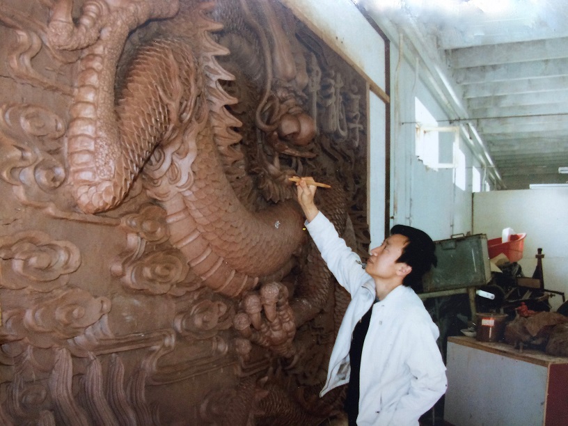 1995年,担任上海明霞工艺品有限公司彩绘、雕刻设计师。