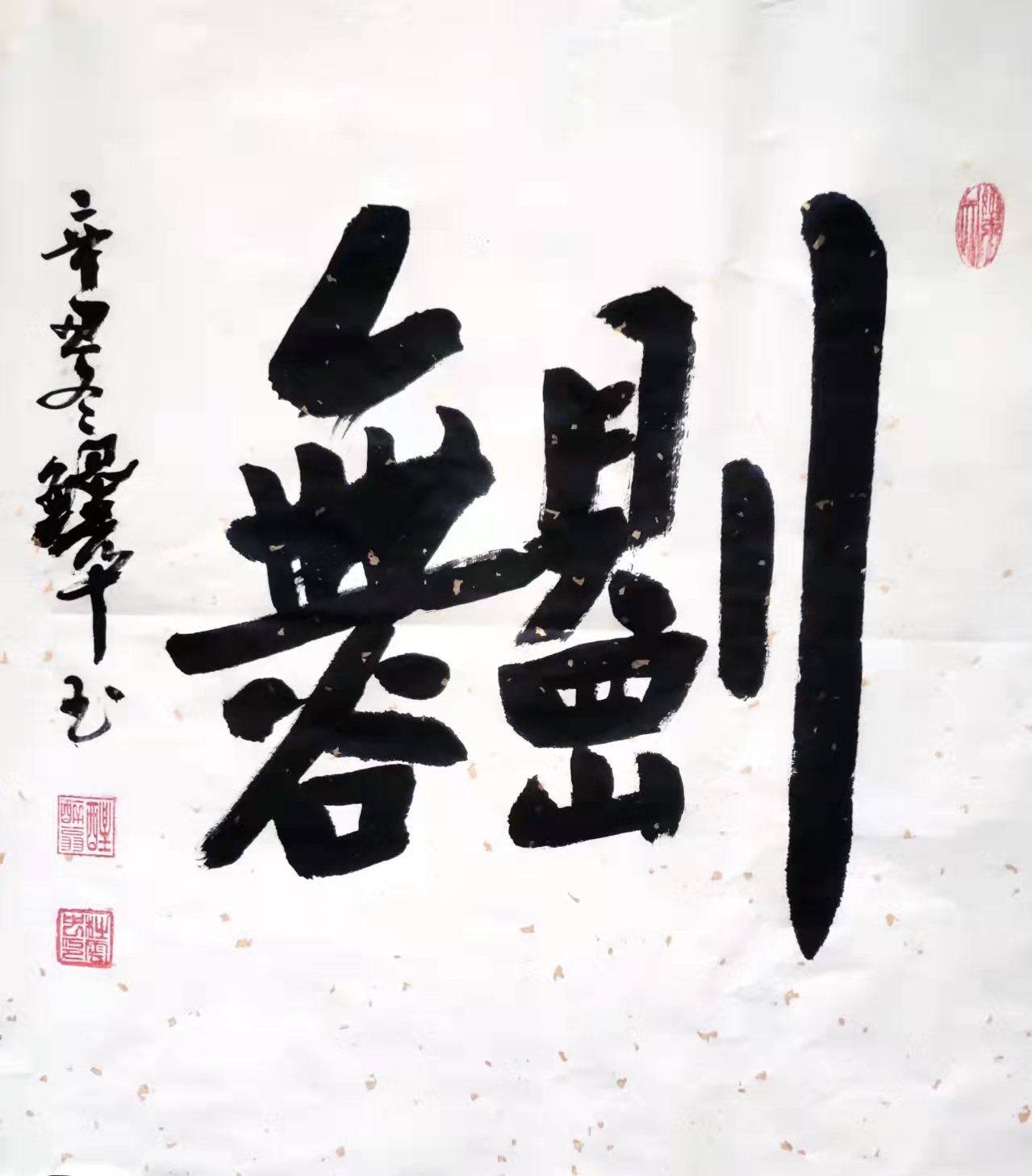 如果仅依这些法不欺人、功不欺世的传统书法作品,杜云中也是书坛证丰功的大手笔!杜云中先生翰墨修到三山巅,仍有凌云创新志!他觉悟仓颉造字远取诸物、近取诸身的大智慧,挥笔写书法亦能造奇字!草书看似狂里轻世界,实则醉里得真如,一挥而成把“醒”““醉”二字连成一体,通过穿插腾挪一气呵成,一个新字诞生了,名曰《醒福醉》!