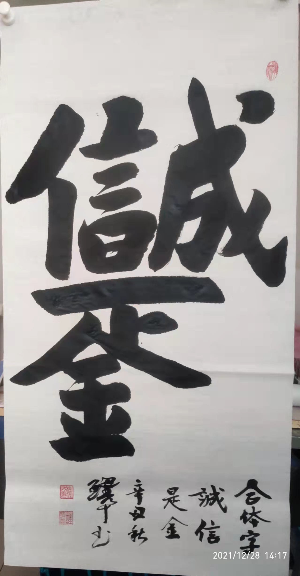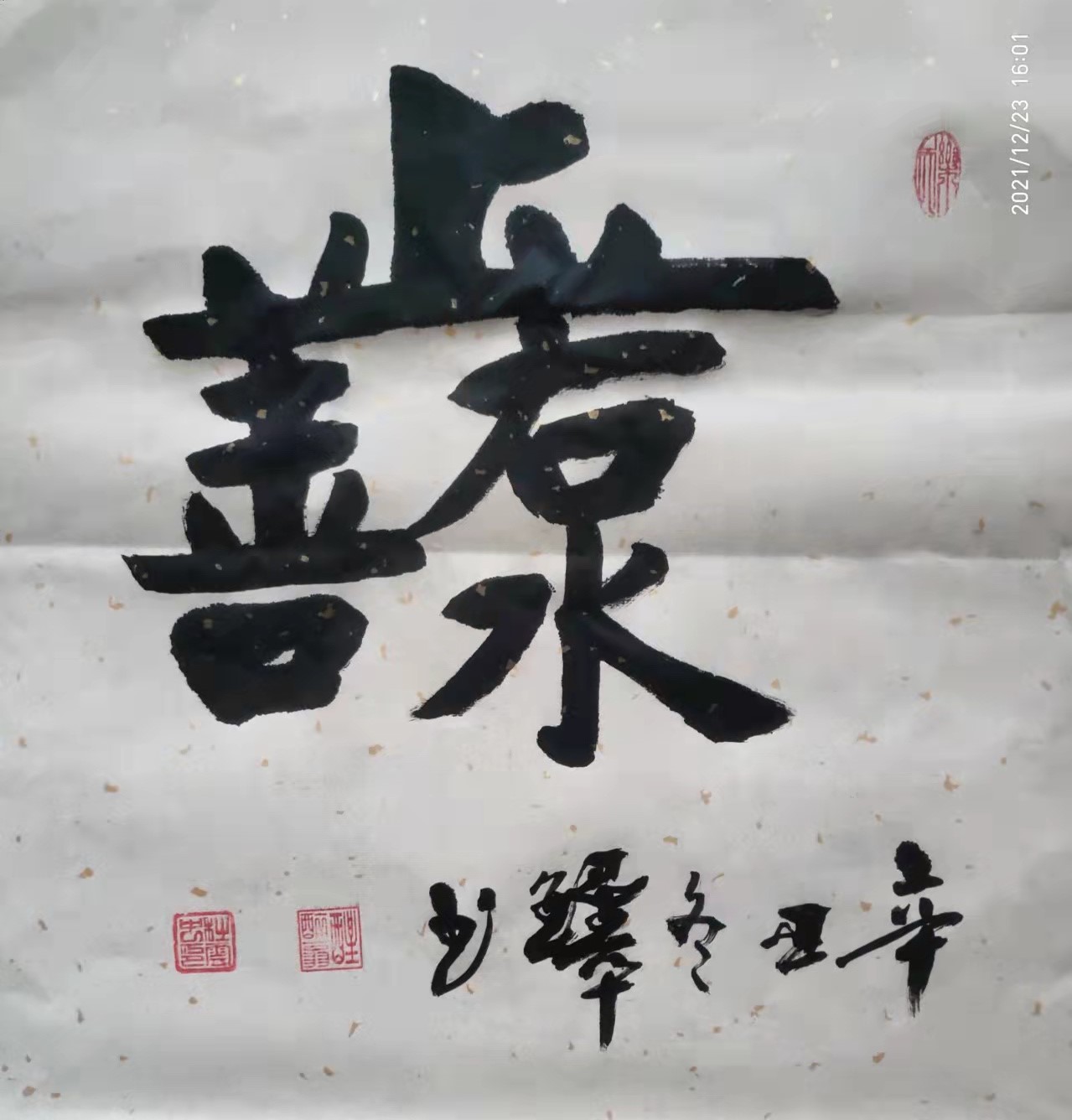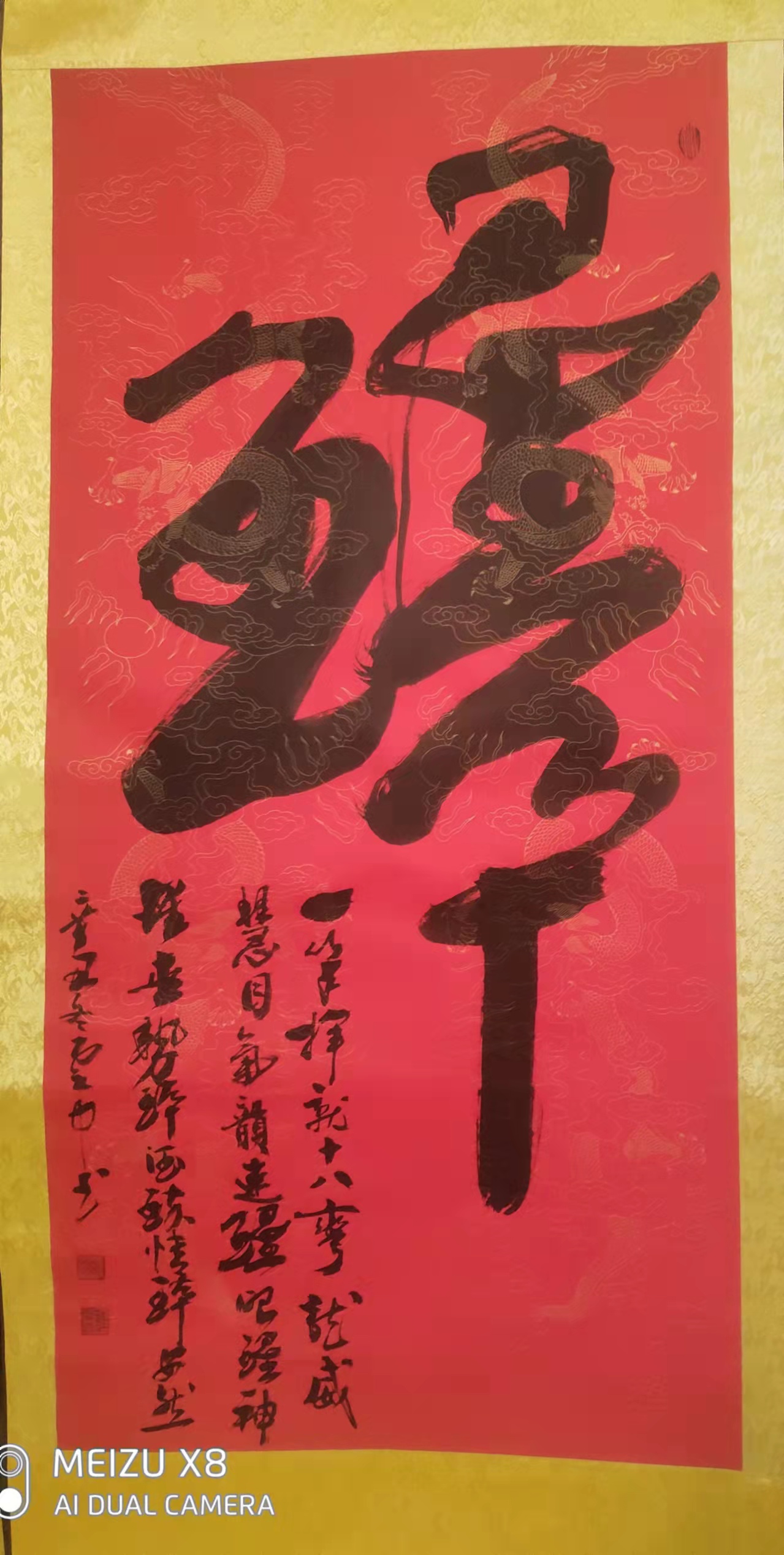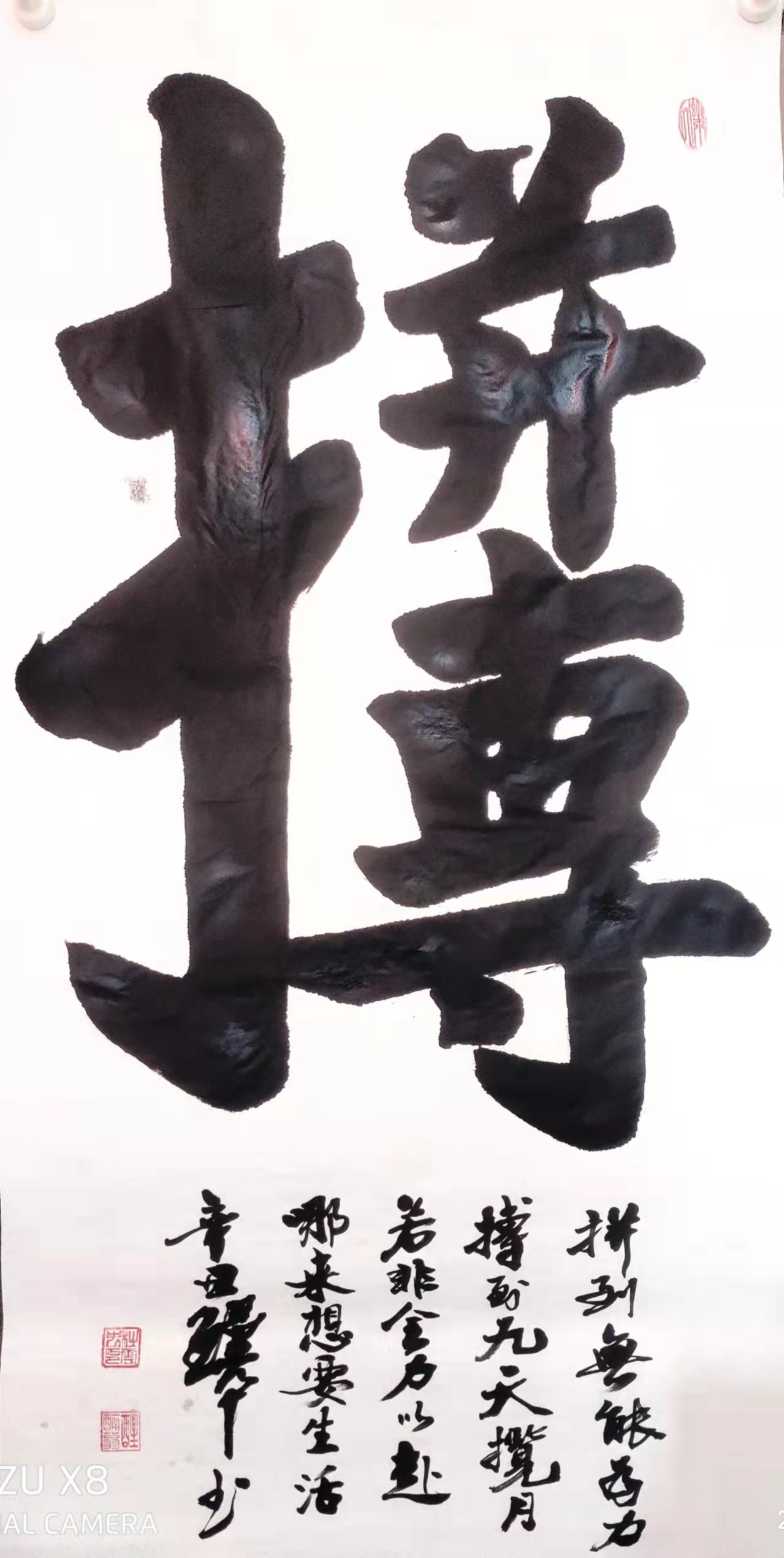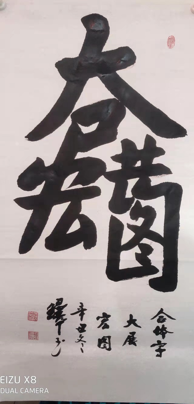 由此感受到诗为书魂的创作信条!不仅如此,杜云中先生在他创作的大多数榜书作品,都有原创诗词,对作品作出阐释,特别是有粉丝提出嵌姓名入诗的要求,也都乐意满足!作为诗圣杜甫的后人,热爱诗词,坚持以撰写诗词入书法,这不但是光宗尊祖的善举,同时大幅提升了作品的艺术含金量,为其书法作品注入了升值潜力!