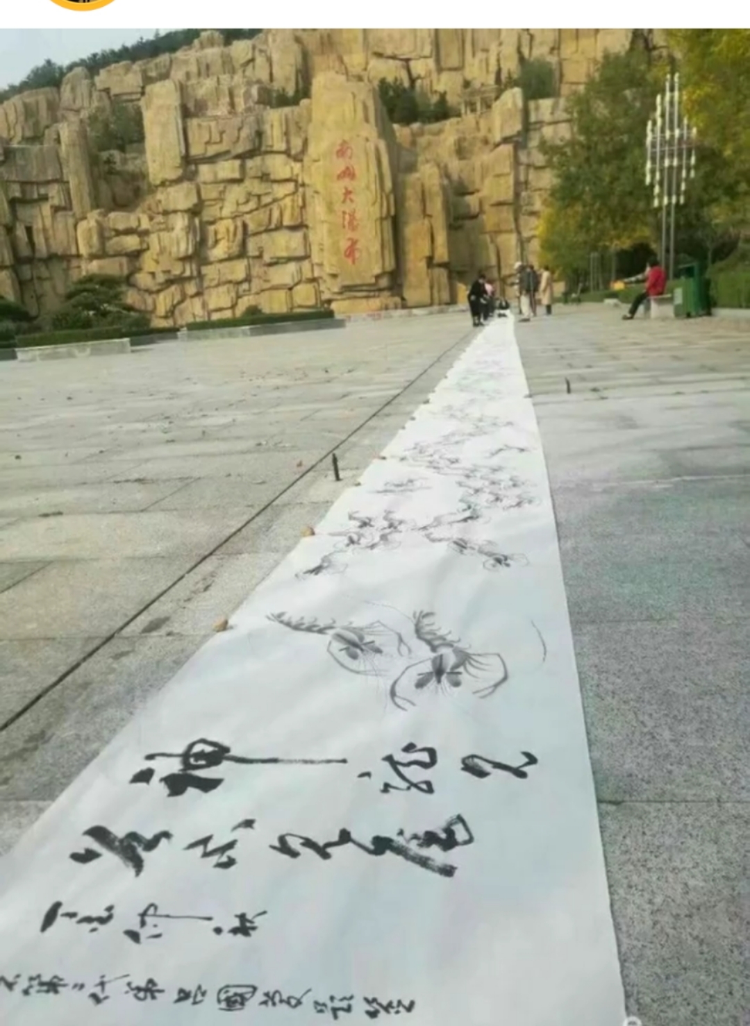 这是我为珠、港、澳大桥顺利畅通特创的23米长卷《二龍戏珠四条屏》在这里虾代表龙 ,两龙相对欢庆戏舞!欢呼歌唱我们伟大的祖国,欢庆华夏民族的复兴,中华掘起已屹立在世界的东方,我们是龙的传人,用中华五千年古圣先贤的文化传遍全球,代表着中国人民在腾飞!代表着我们国家富强,迎接更加美好的未来,中国将引领各民族实现世界大同!