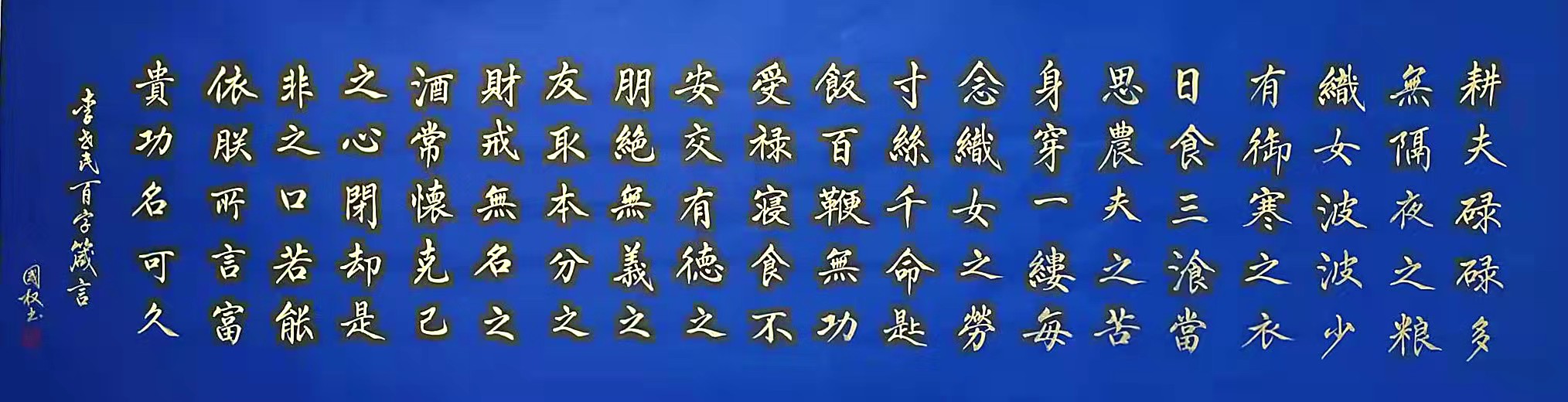 2017年,作品《家训百字铭》,获华夏杯全国书法大赛金奖,同年,《家训百字铭》被著名影视明星范伟先生所收藏,作品被收录于范氏祖祠及范仲淹祠堂。