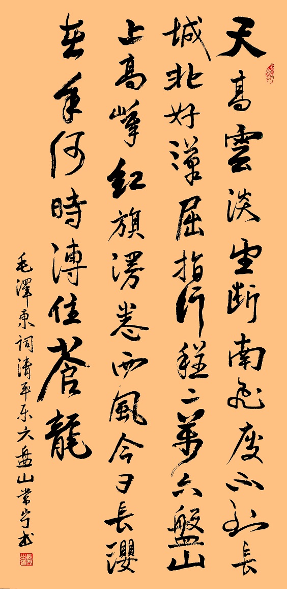 2022年5月书法作品毛泽东《清平乐.六盘山》荣获2022”亚运杯”全国书画摄影大赛书法组金奖。