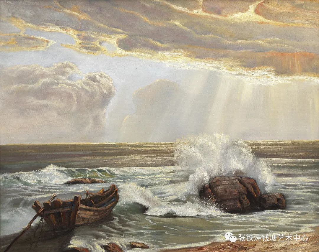 “随着时间的流逝海平面汹涌之势逐渐减弱浪潮归去希望的曙光透出云层