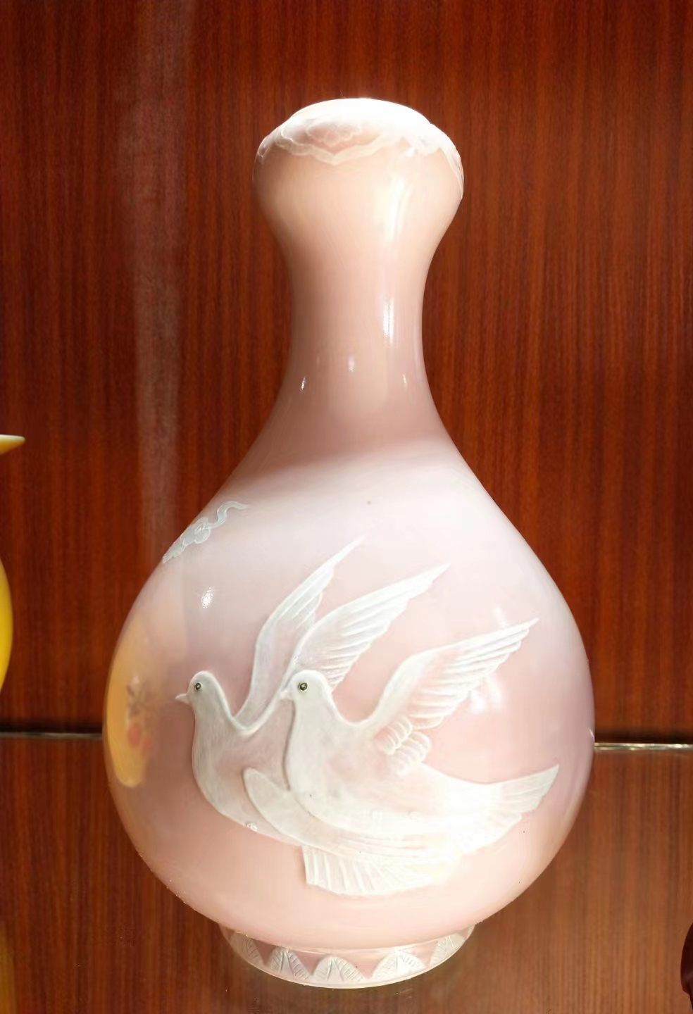 景德镇四大名瓷之一,薄胎碗(直径,108厘米厚0,4厘米高8厘米)是景德镇已故老艺人(高梅生)在80年代创作的,此碗当年获得世界陶瓷吉尼斯最大,最薄的纪录。