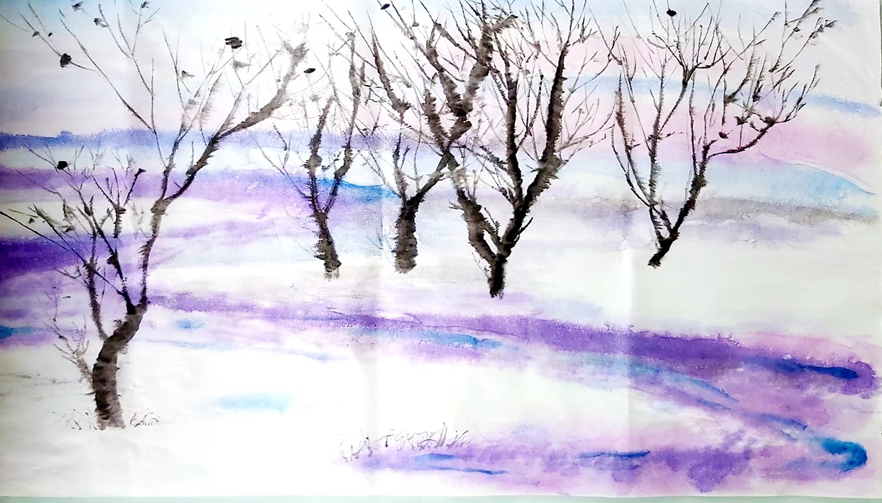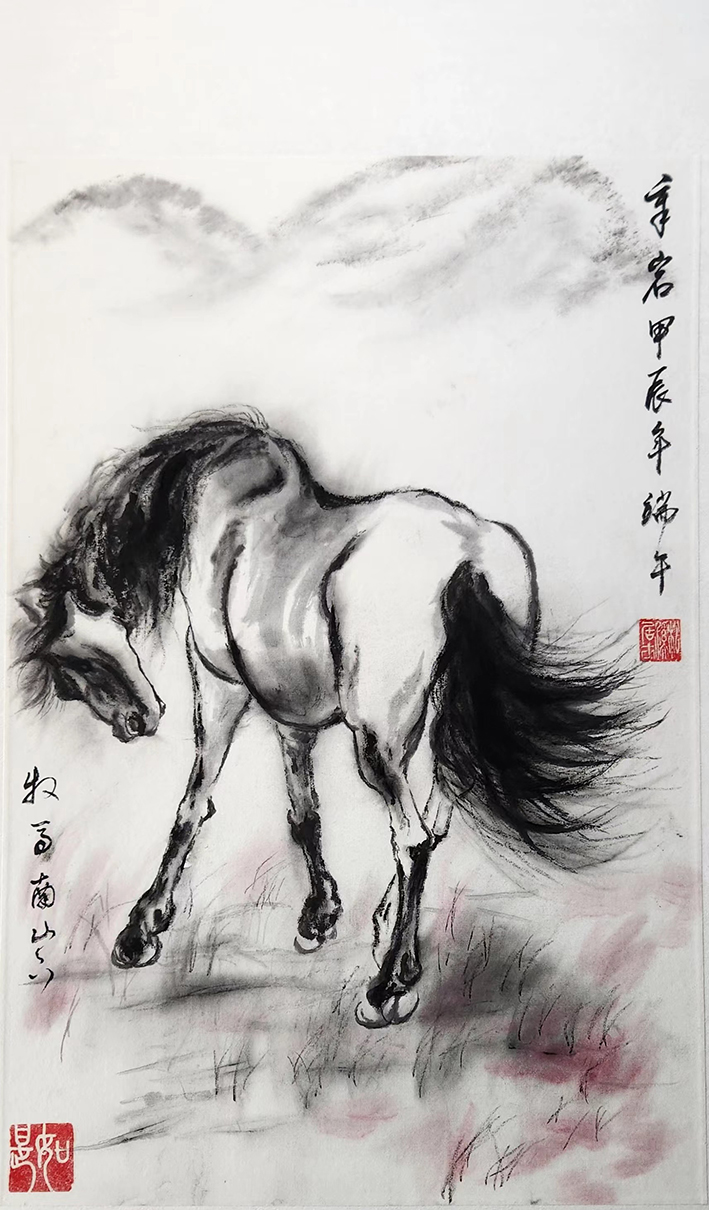 做为画家,自幼喜好绘画,以西画入手、先素描、后水彩,立意于中西绘画取长补短,相结合对美的感受进行表达。中国山水、花鸟、人物画以及金石、篆刻皆通,主攻中国泼墨写意画。开创了具有极简主义禅意风的“中国枯山水绘画”风格,具备“简洁静寂、空灵悠远” 的高度概括艺术风格,“有山处隐山、无水处喻水”,留白处显现幽思和气韵,体现出“一花一世界、一叶一菩提”的自然观,以 “简洁、悠长、雄浑、静谧“的艺术风格著称。擅画写意山水、人物、松树、荷花、虎、马等,且多假以泼墨形式。山水画致力于将北方地区的雄浑、苍茫用中式写意风格来表达,以宋画开始入手,远师马、夏,再王蒙、倪云林,后渐江,至近代的张大千,兼习傅抱石、石鲁、赵望云、谢稚柳、吴湖帆;花鸟画以八大山人为师,兼习青藤白阳、任伯年、恽寿平、吴昌硕、齐白石;人物、动物画师任伯年、徐悲鸿、刘继卣等。书法以楷入行到草,行书师赵松雪、董其昌,草书远追钟张、二王,师孙过庭、怀素,金石篆刻以吴昌硕、邓石如为师。